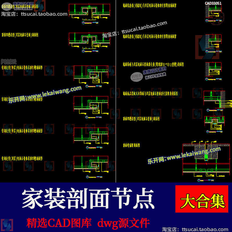 踢脚线墙面吊顶地面窗帘盒窗台板暗藏消防栓CAD剖面节点大样详图免费下载