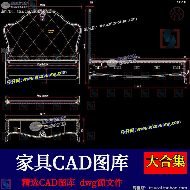 这是一款家具CAD图纸,需要AutoCAD、天正CAD等软件打开哦,也可以使用CAD看图软件直接打开查看。乐开网是一个专业的CAD图纸下载网站,拥有海量的室内外CAD图纸下载,注册加入会员即可全站下载哦。
