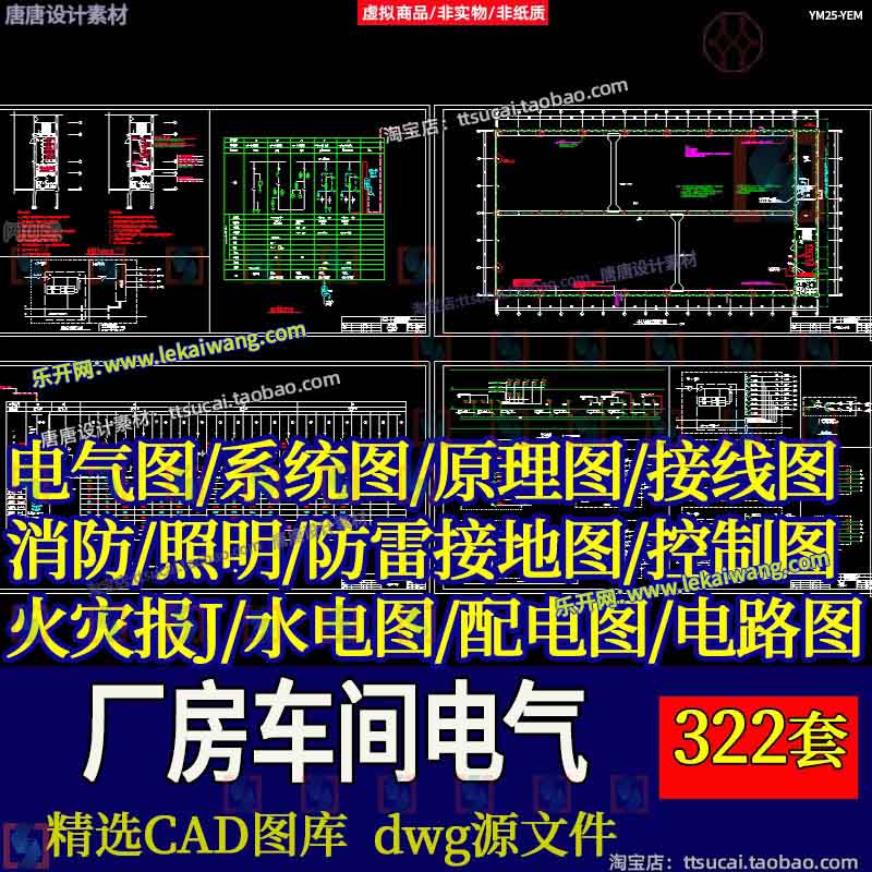 工业机械电子石化厂房车间电气照明配电弱电消防设计CAD施工图纸免费下载