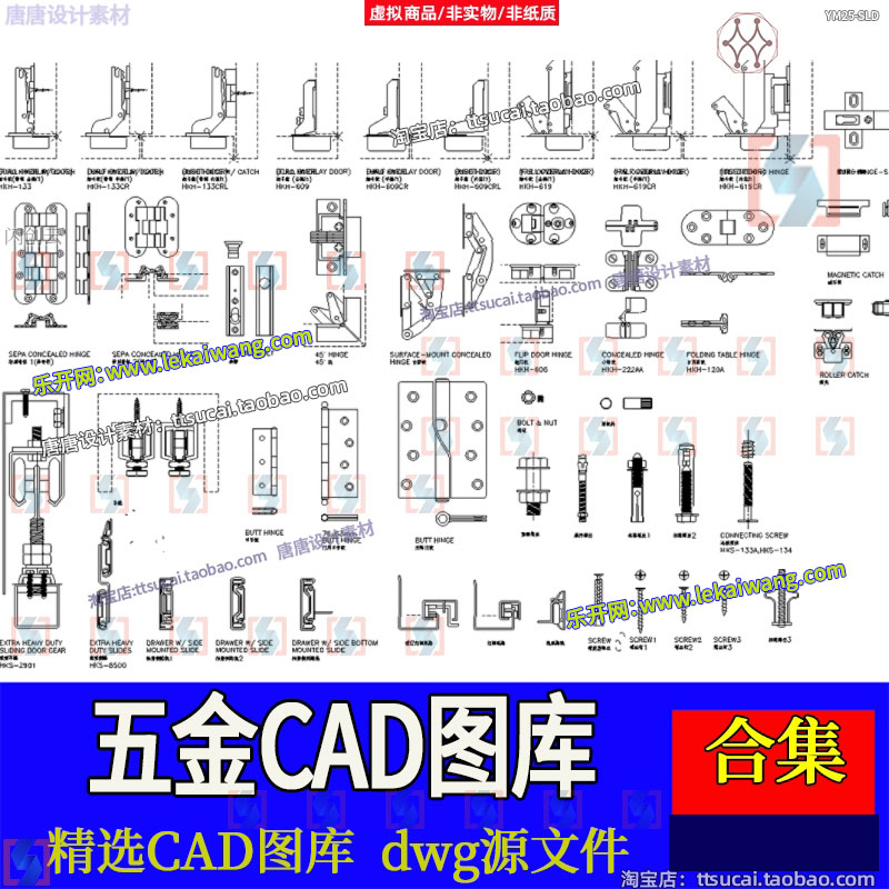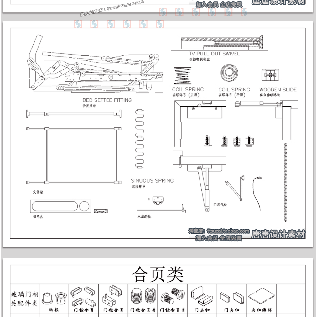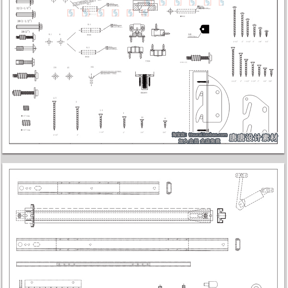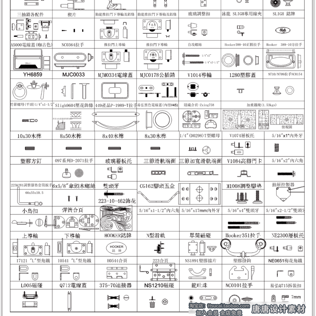 家装家具标准五金零配件图库大全组合器拉手铰链木榫CAD图纸图库免费下载