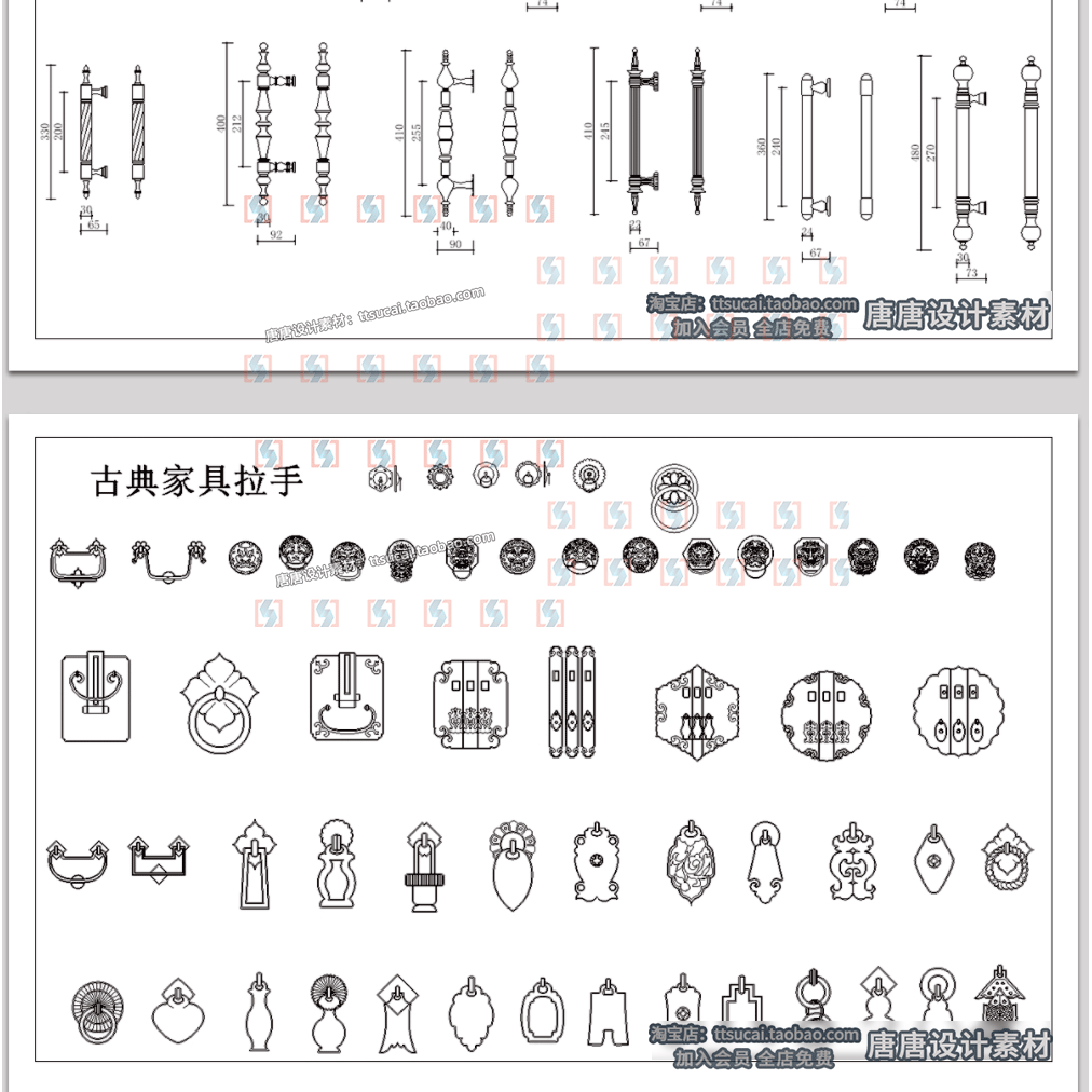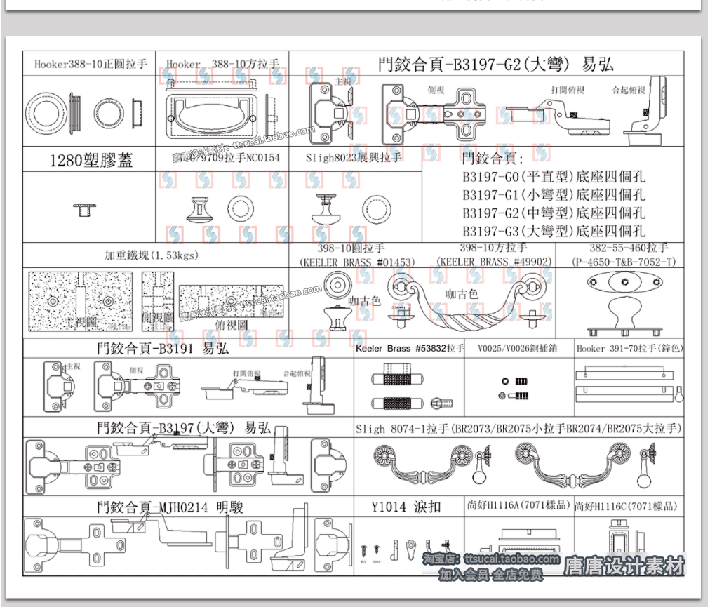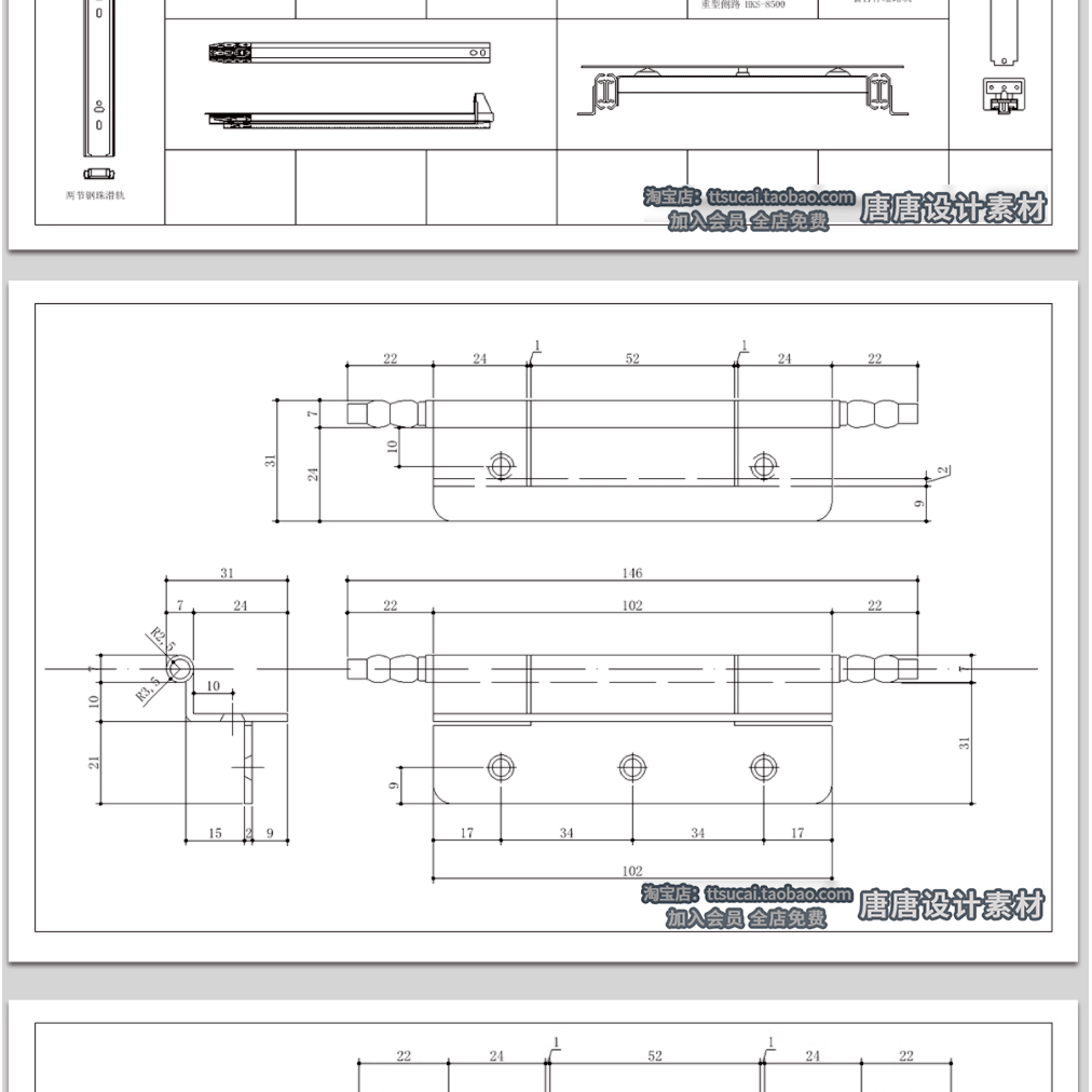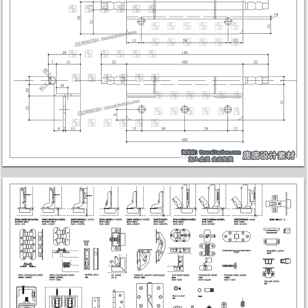 全屋定制五金配件CAD图库 家具柜子拆单图拉手合页铰链零件模块库免费下载