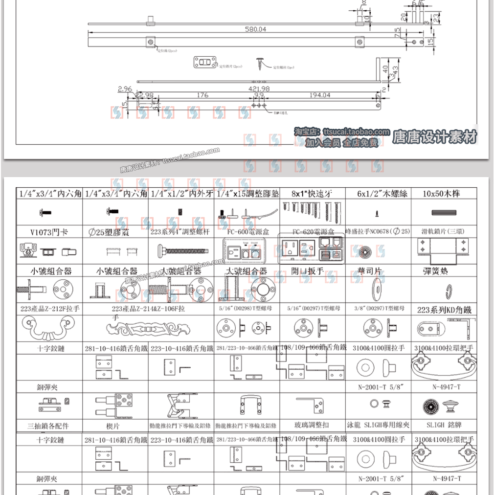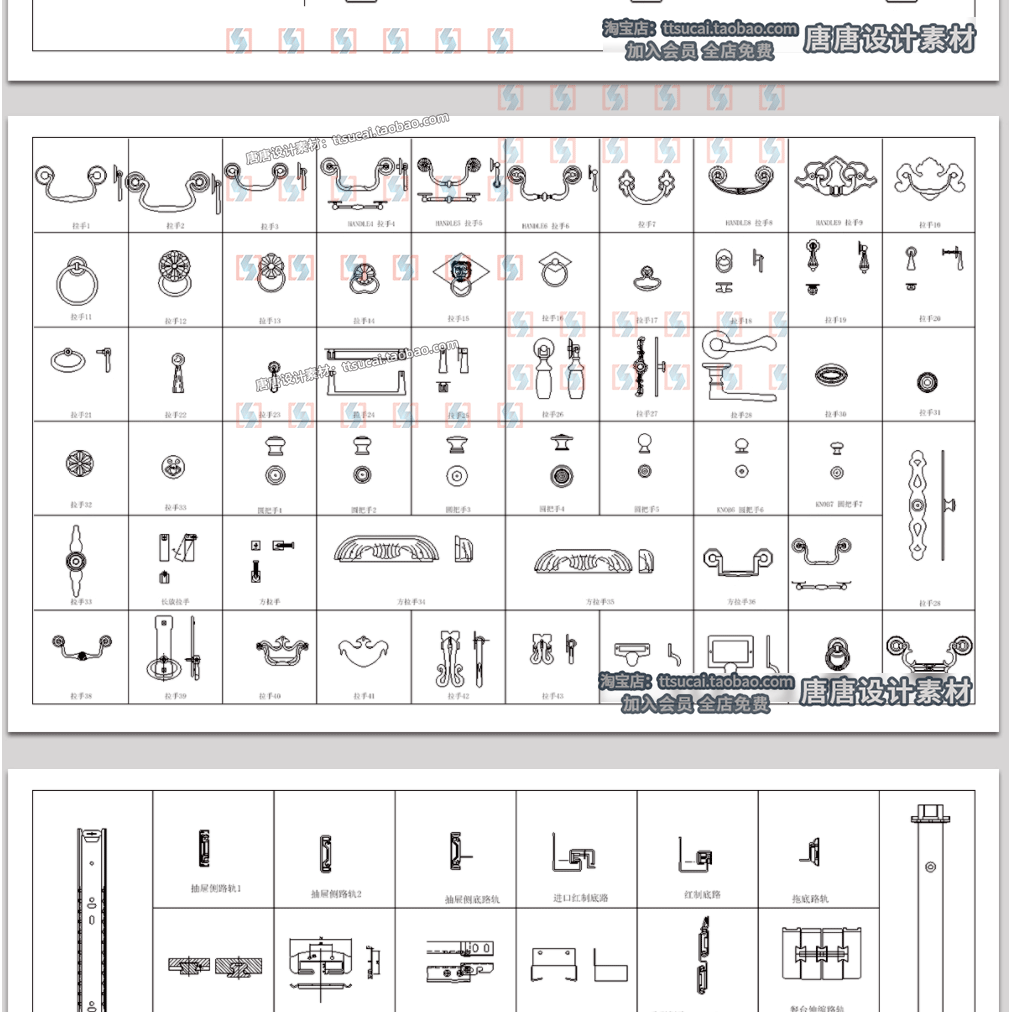 室内设计家装中欧式五金配件门锁铰链家具拉手衣柜轨道cad图纸库免费下载