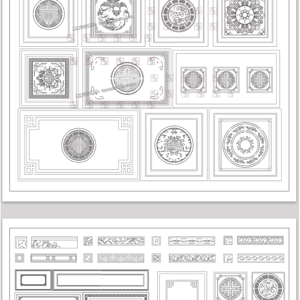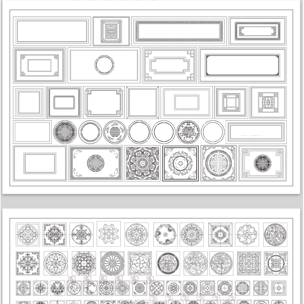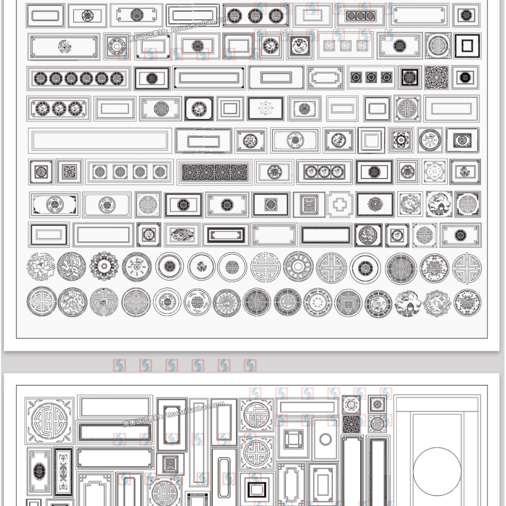 常用中式格栅江南花窗镂空窗格古典明清门窗雕花装饰画cad图块库免费下载