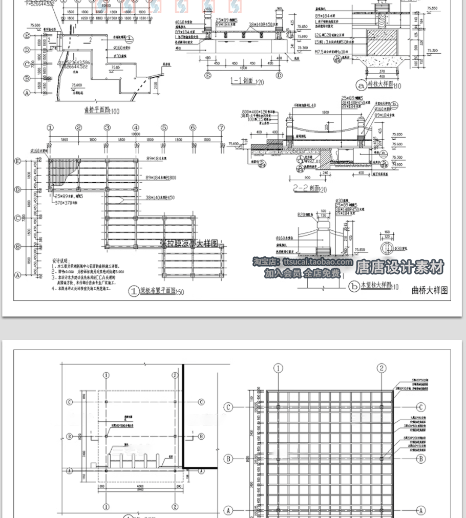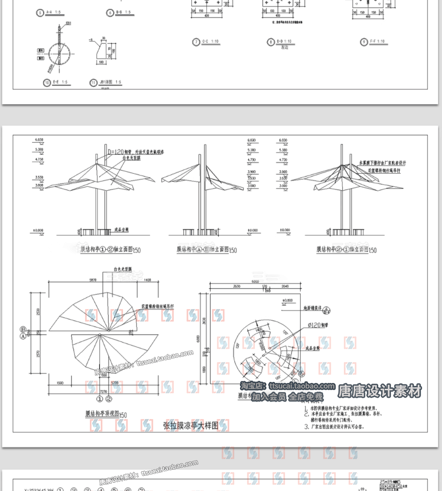 空间膜结构凉亭子钢架结构停车棚遮阳雨棚cad平立面施工图纸素材免费下载
