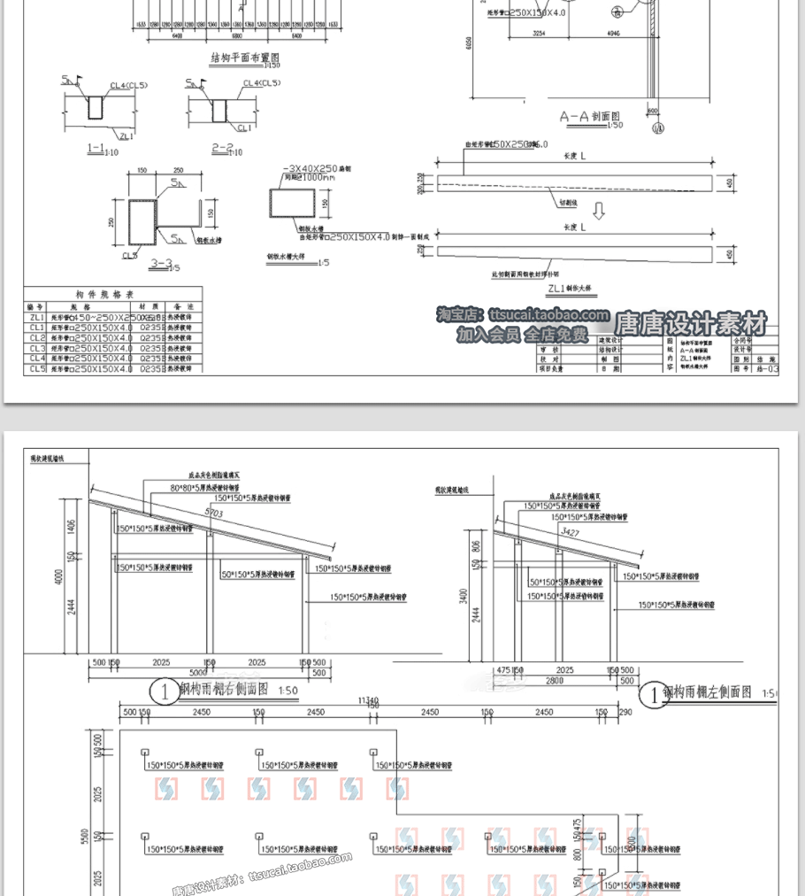 钢结构中式仿古遮雨棚建筑屋檐门脸雨棚CAD施工剖面节点大样图纸免费下载