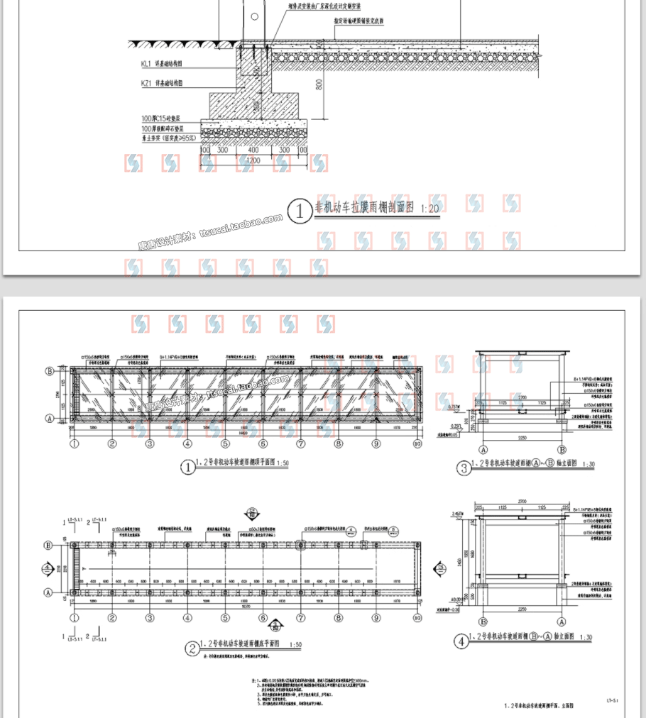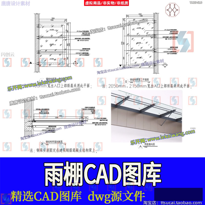 钢结构雨棚cad图纸钢化夹胶玻璃张拉膜非机动车坡道雨棚节点做法免费下载
