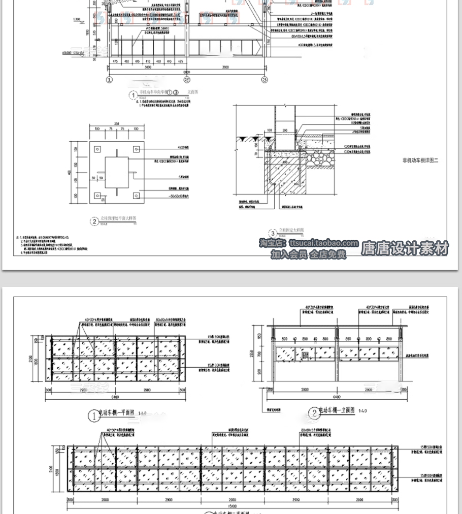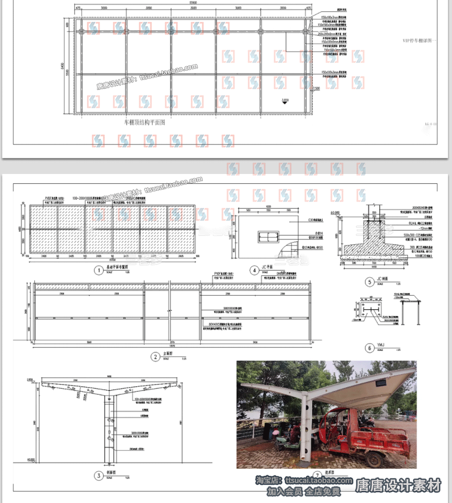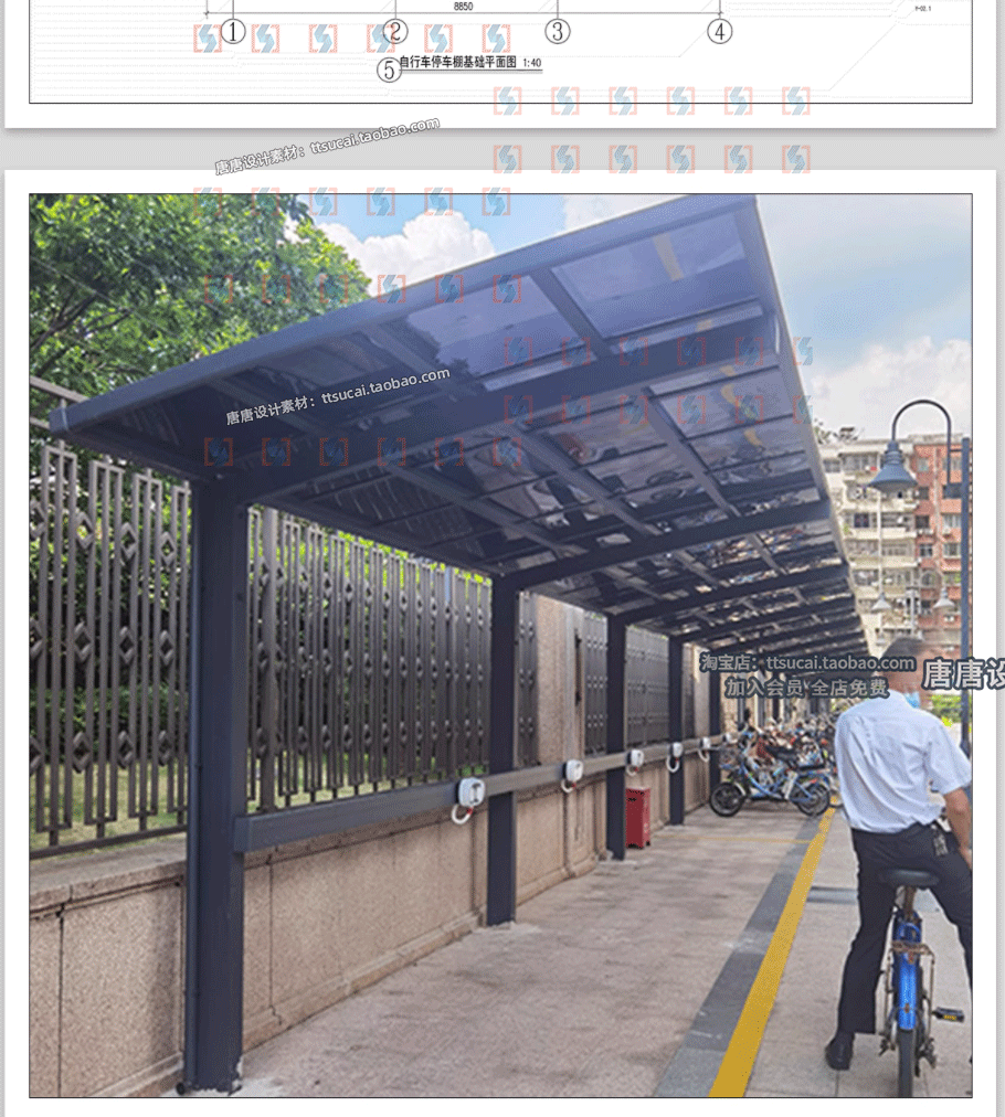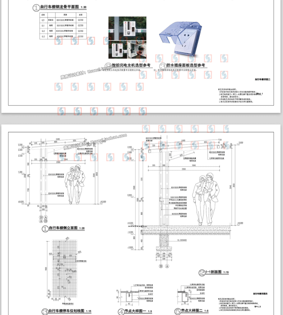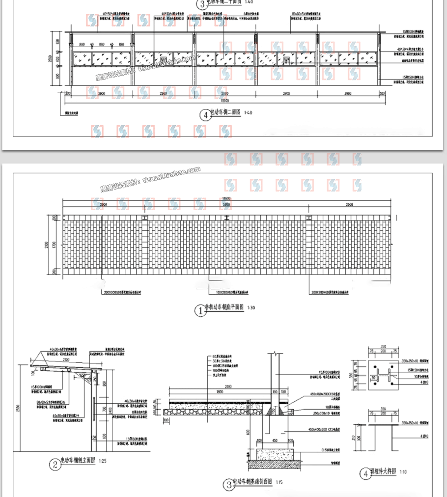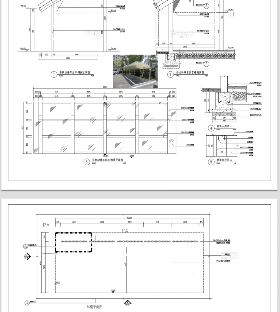 非机动车停车棚cad施工图电动自行车充电桩位雨棚遮阳棚做法详图免费下载