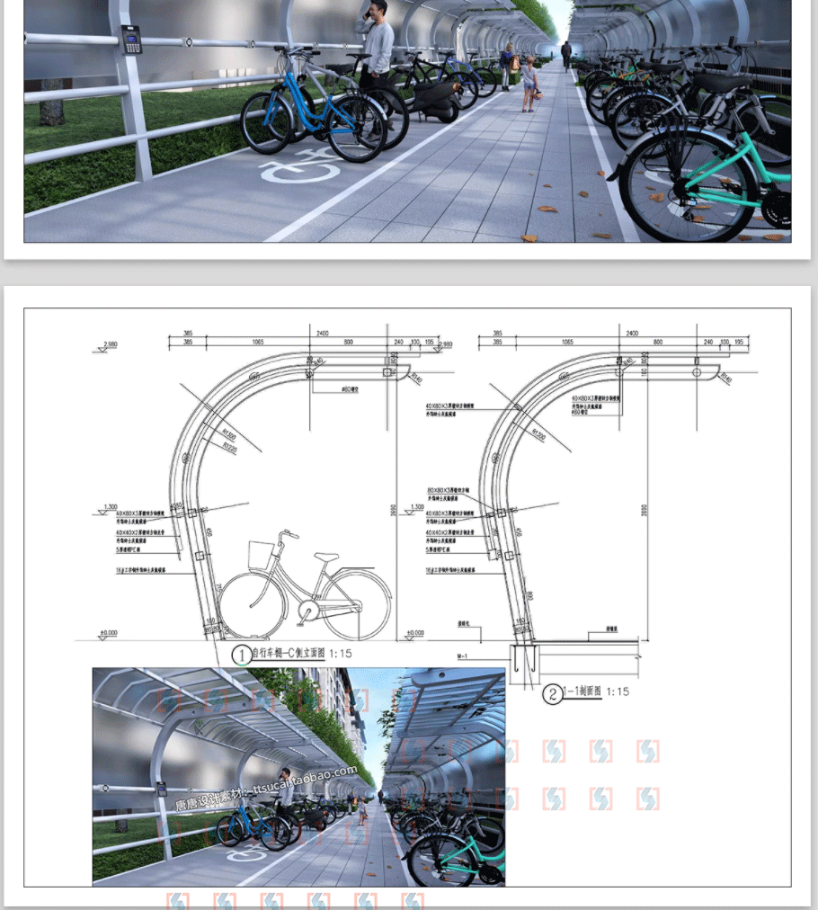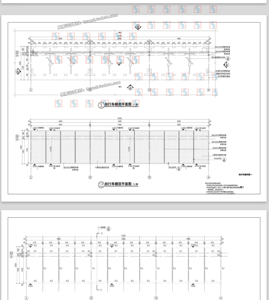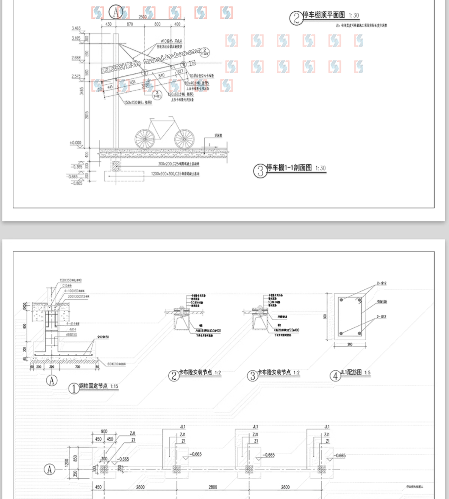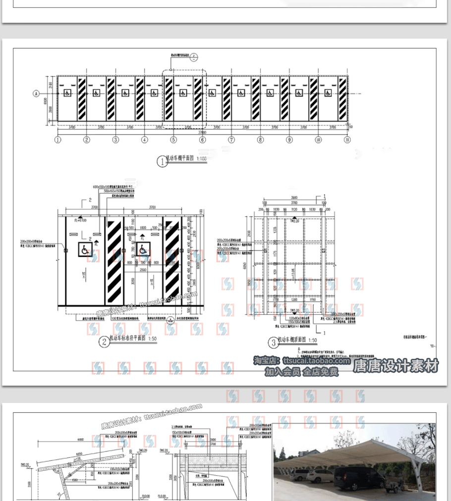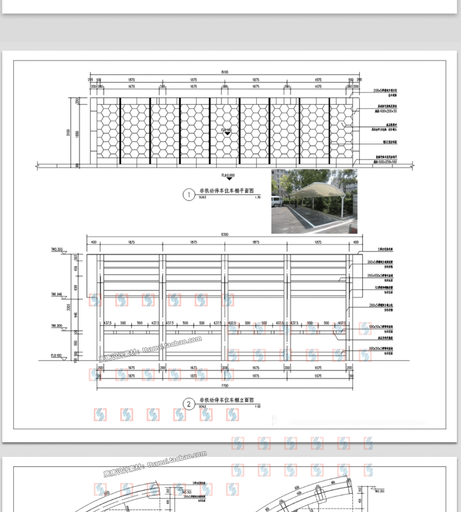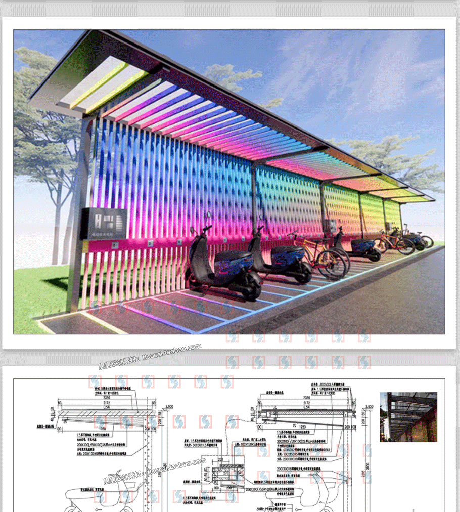 非机动车停车棚cad施工图电动自行车充电桩位雨棚遮阳棚做法详图免费下载