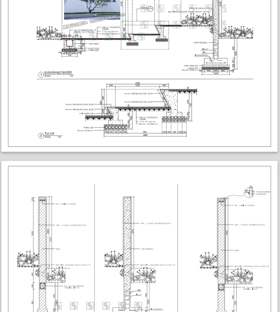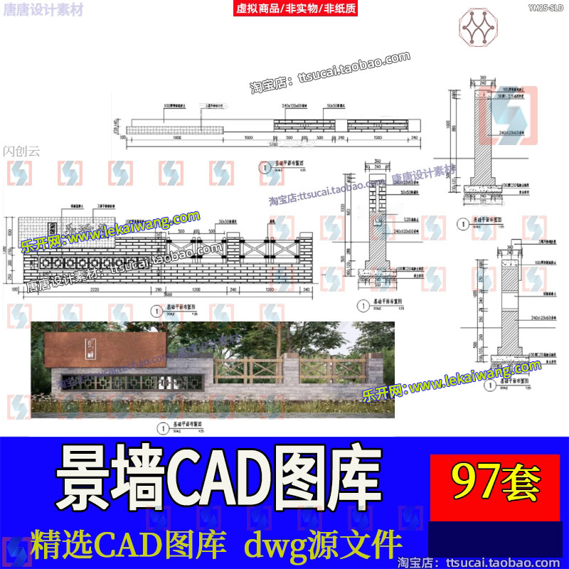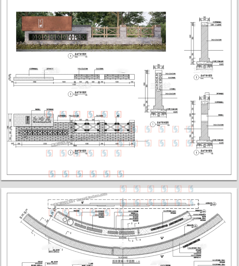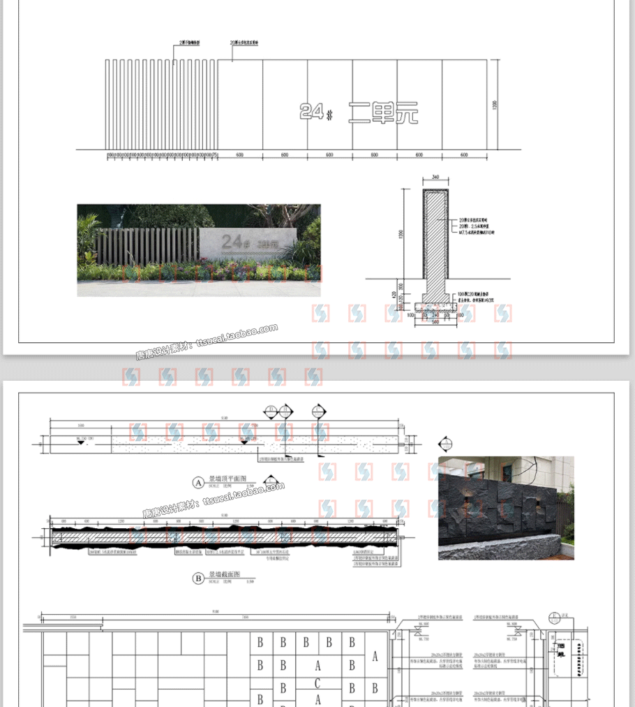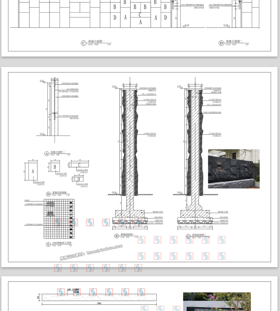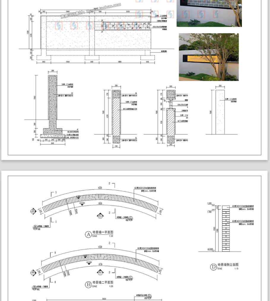 清水砖景墙cad施工图库现代入户水景墙庭院镂空格栅景墙节点详图免费下载