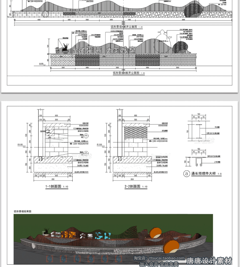 商业街精神堡垒结构图入口标识牌指示牌景观施工图详图cad图纸库免费下载
