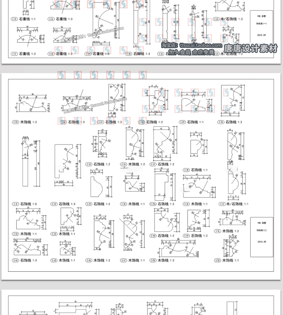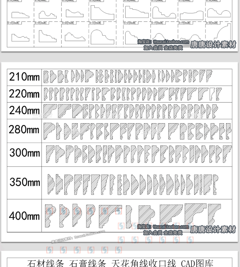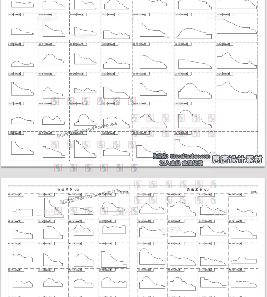 家装踢脚线装饰线条天花角线门套框线条大样剖面CAD图纸图库素材免费下载