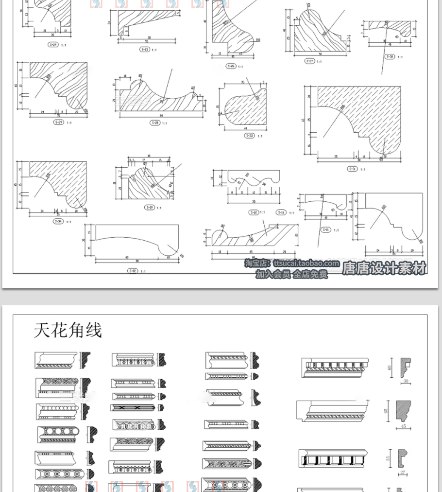 家装常用吊顶造型天花石膏线装饰线踢脚线阴角线节点详图cad图纸免费下载