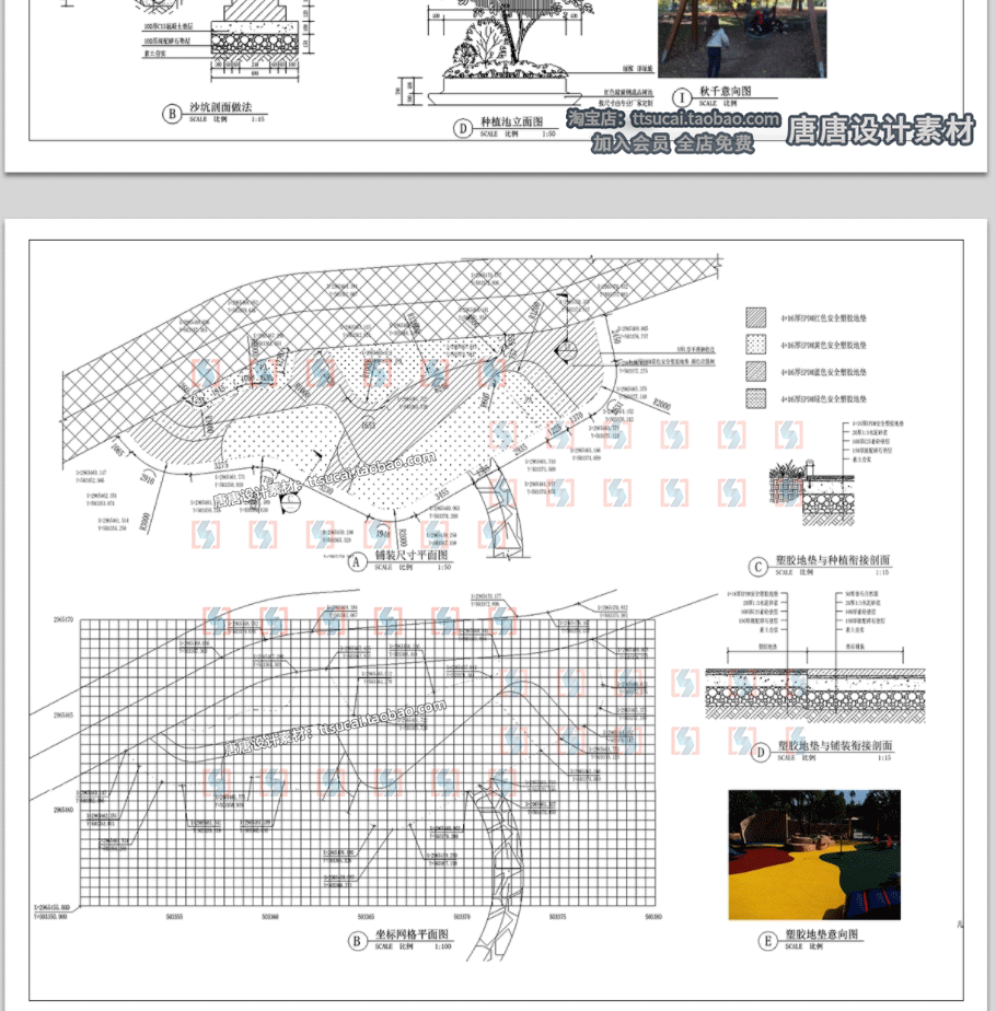 儿童游乐场幼儿园户外塑胶活动场地平面图游戏设施节点cad详图纸免费下载