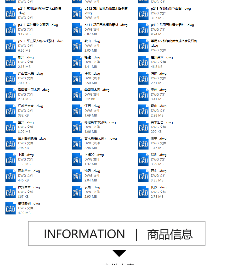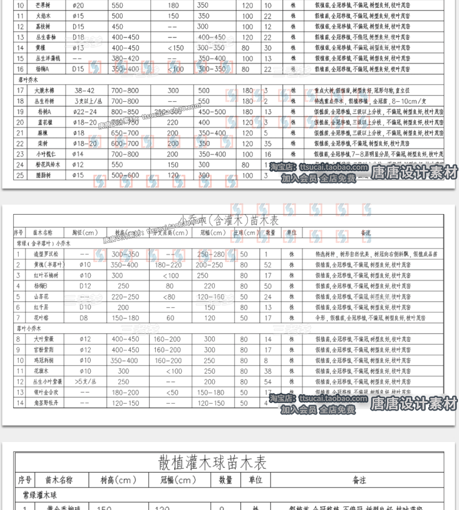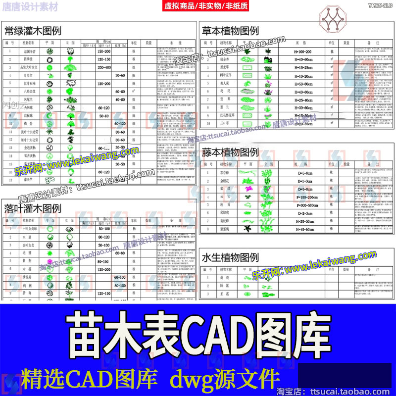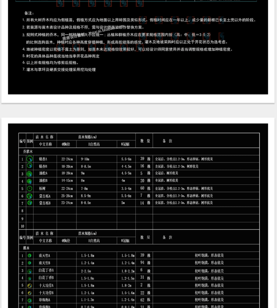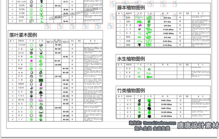 常用苗木表CAD图库园林景观绿化南北方云南上海植物配置植物图例免费下载