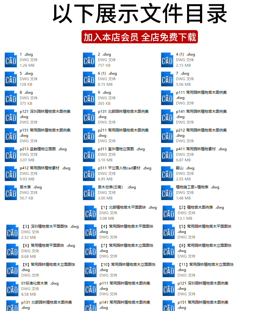 园林景观南方北方常用植物绿篱地被配置CAD图纸库苗木表图块图例免费下载
