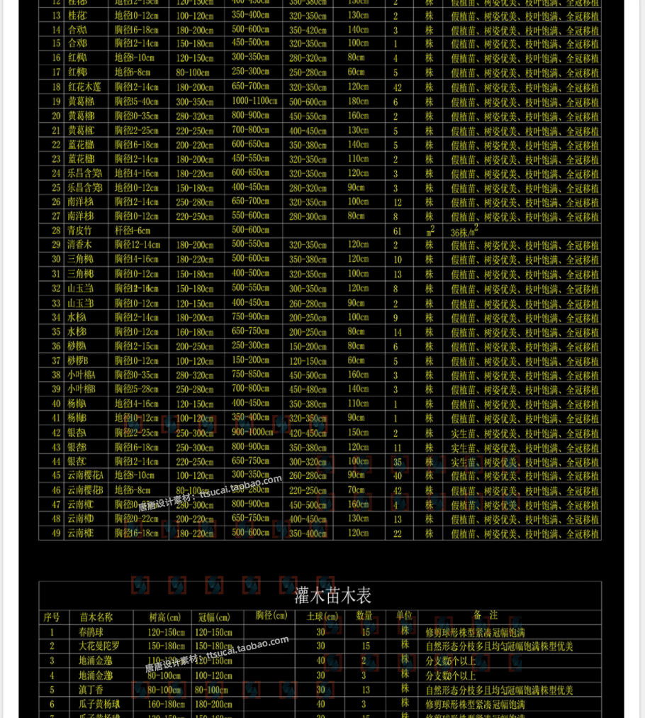 苗木表cad