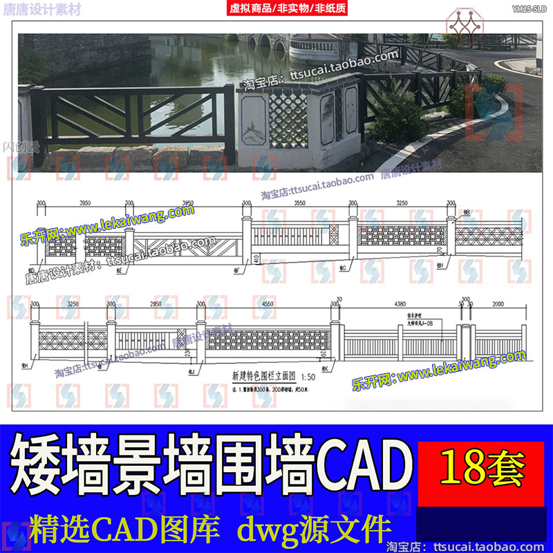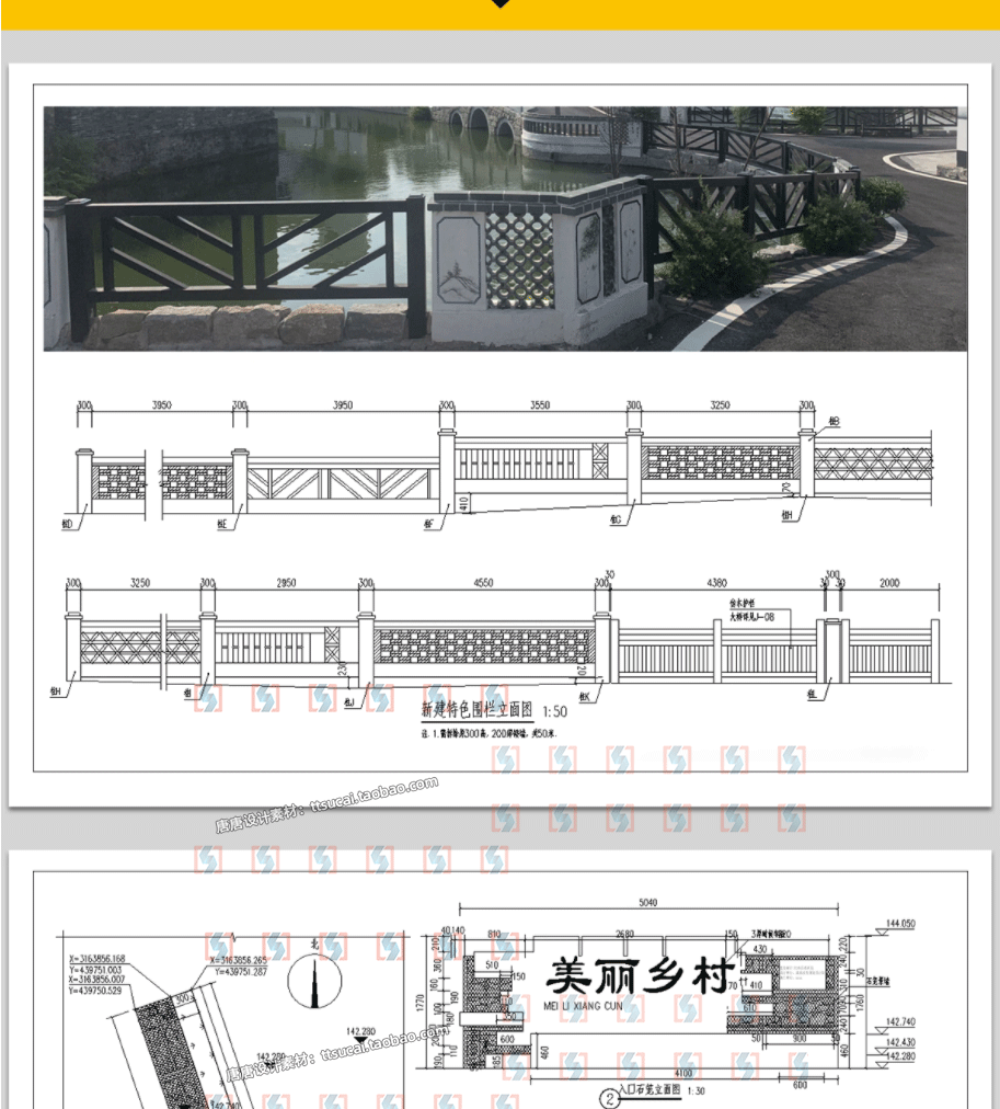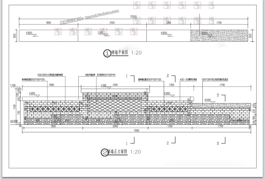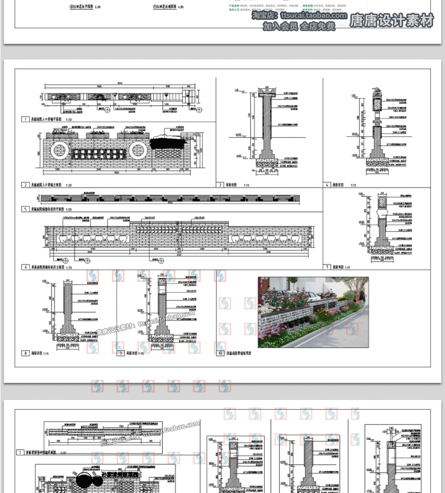 乡村景墙矮墙CAD图纸中式农村青砖围墙菜地围栏做法节点大样详图免费下载