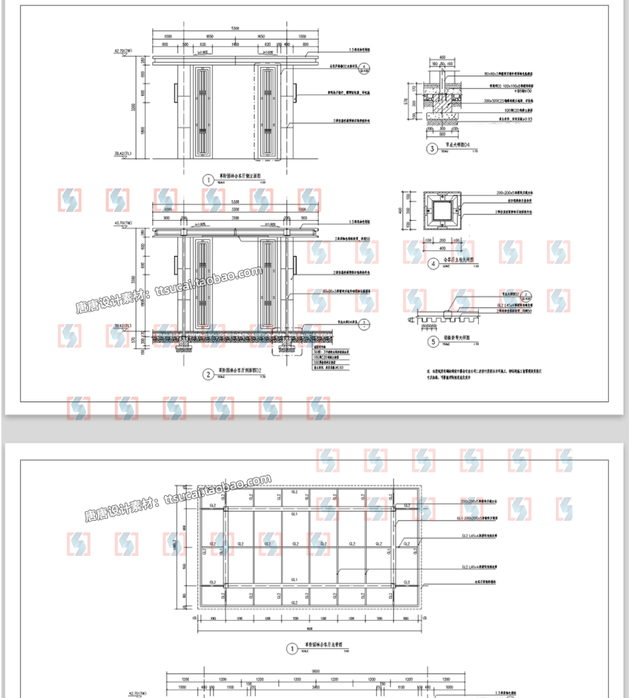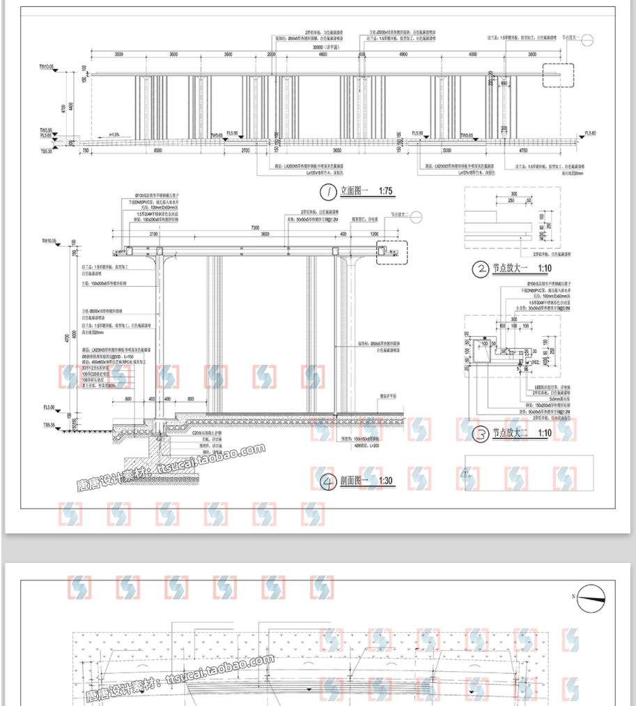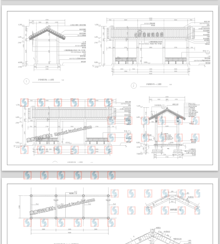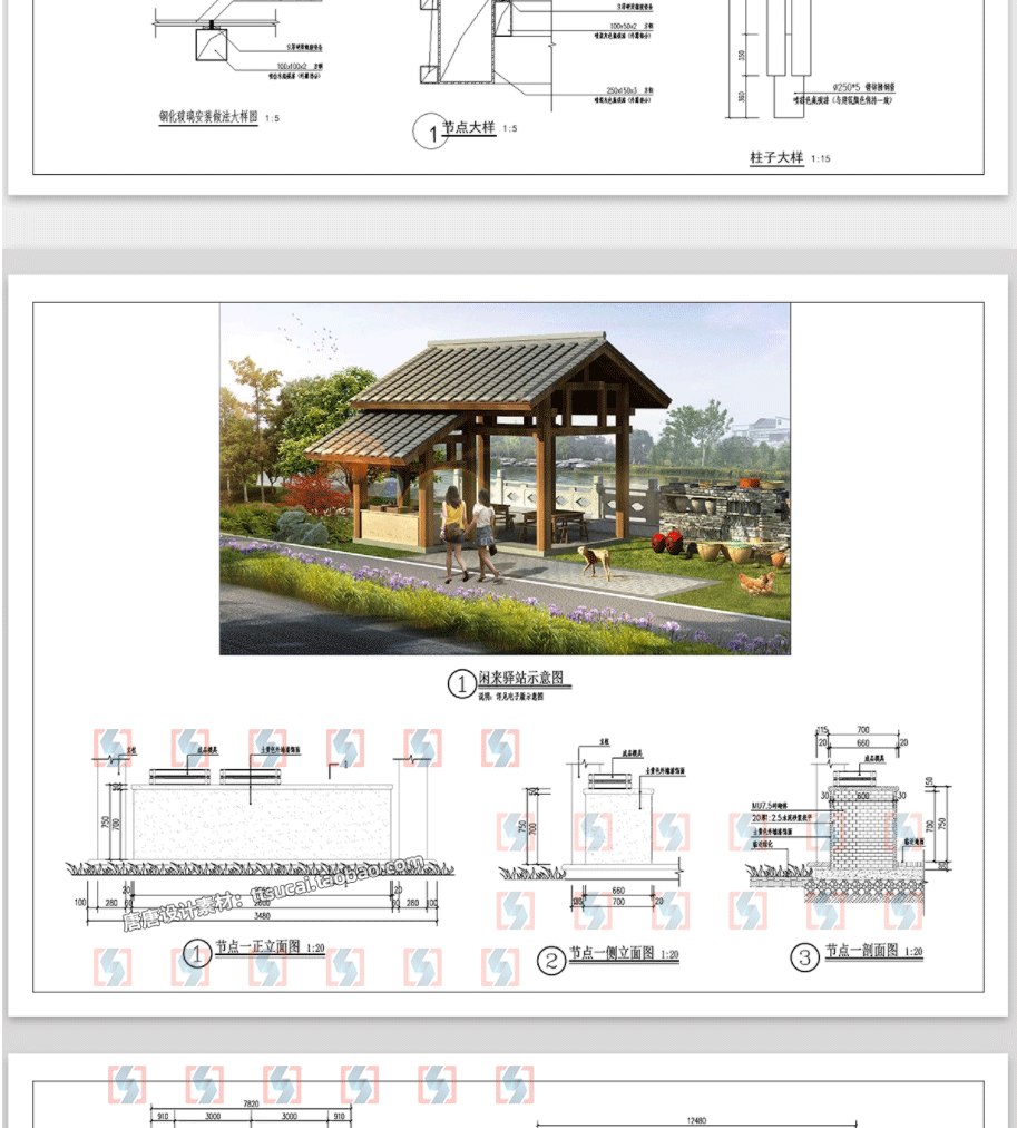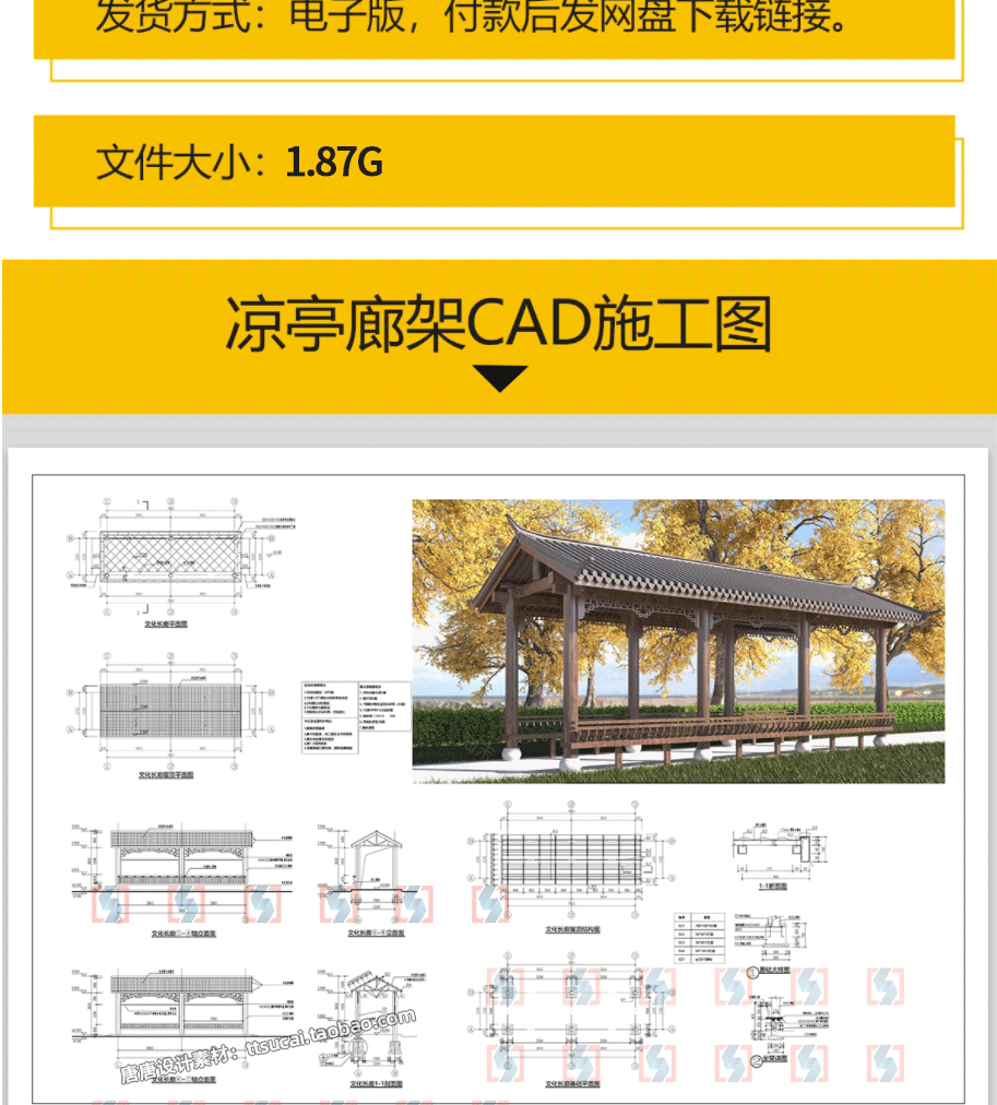 凉亭子亭廊CAD施工图纸中式廊架现代亲水景观亭车库构架门廊详图免费下载
