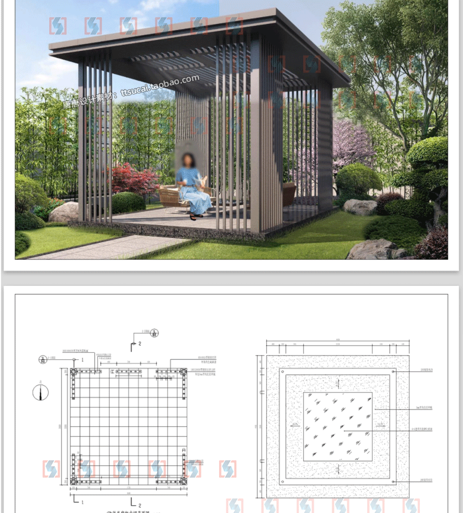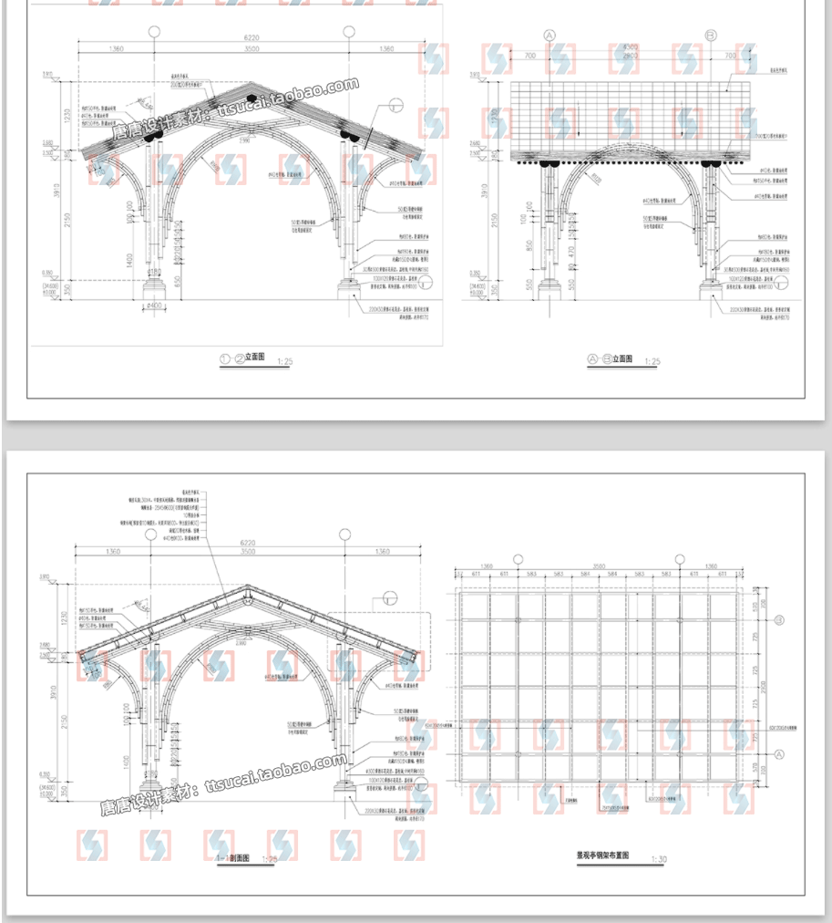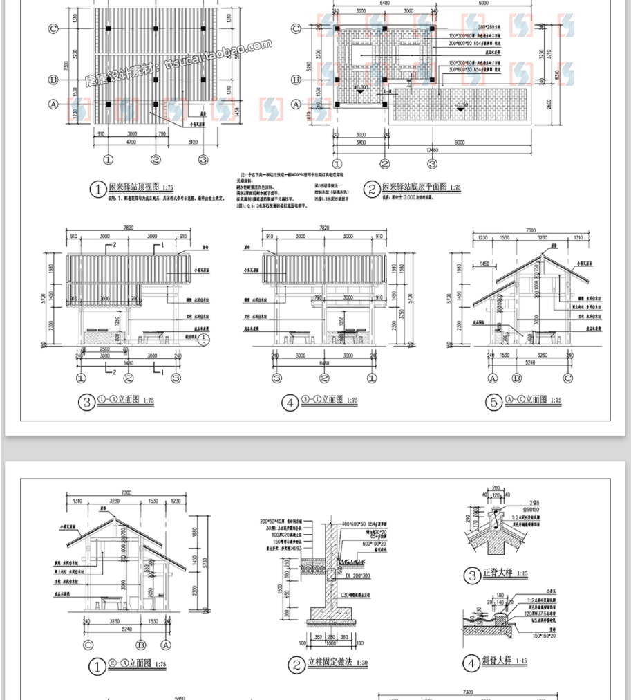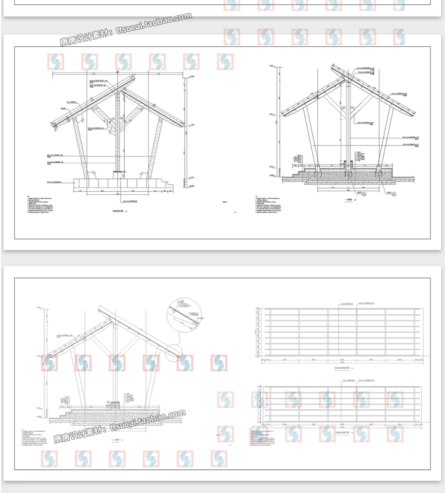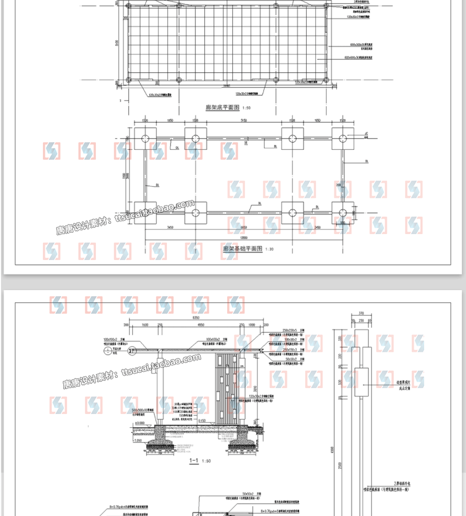 凉亭子亭廊CAD施工图纸中式廊架现代亲水景观亭车库构架门廊详图免费下载