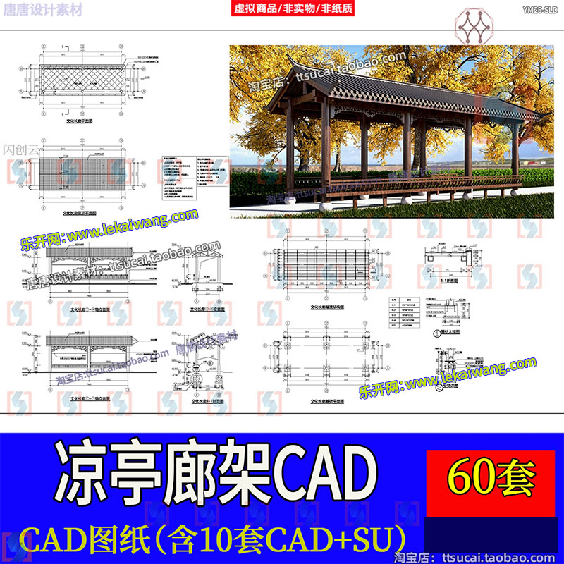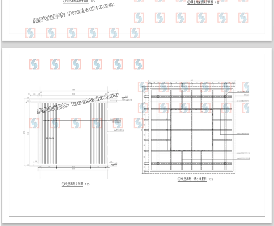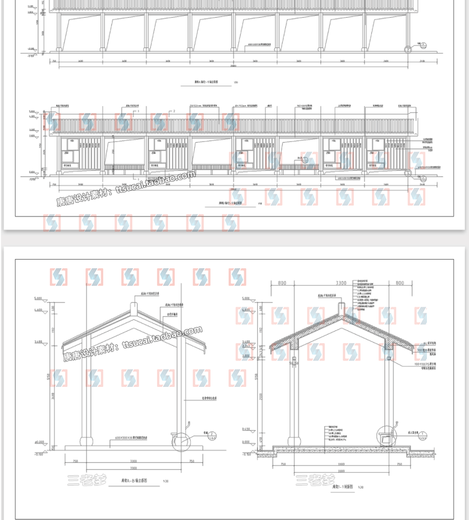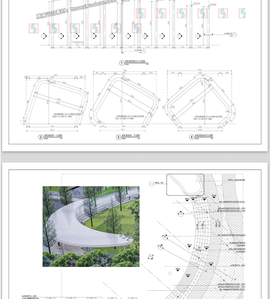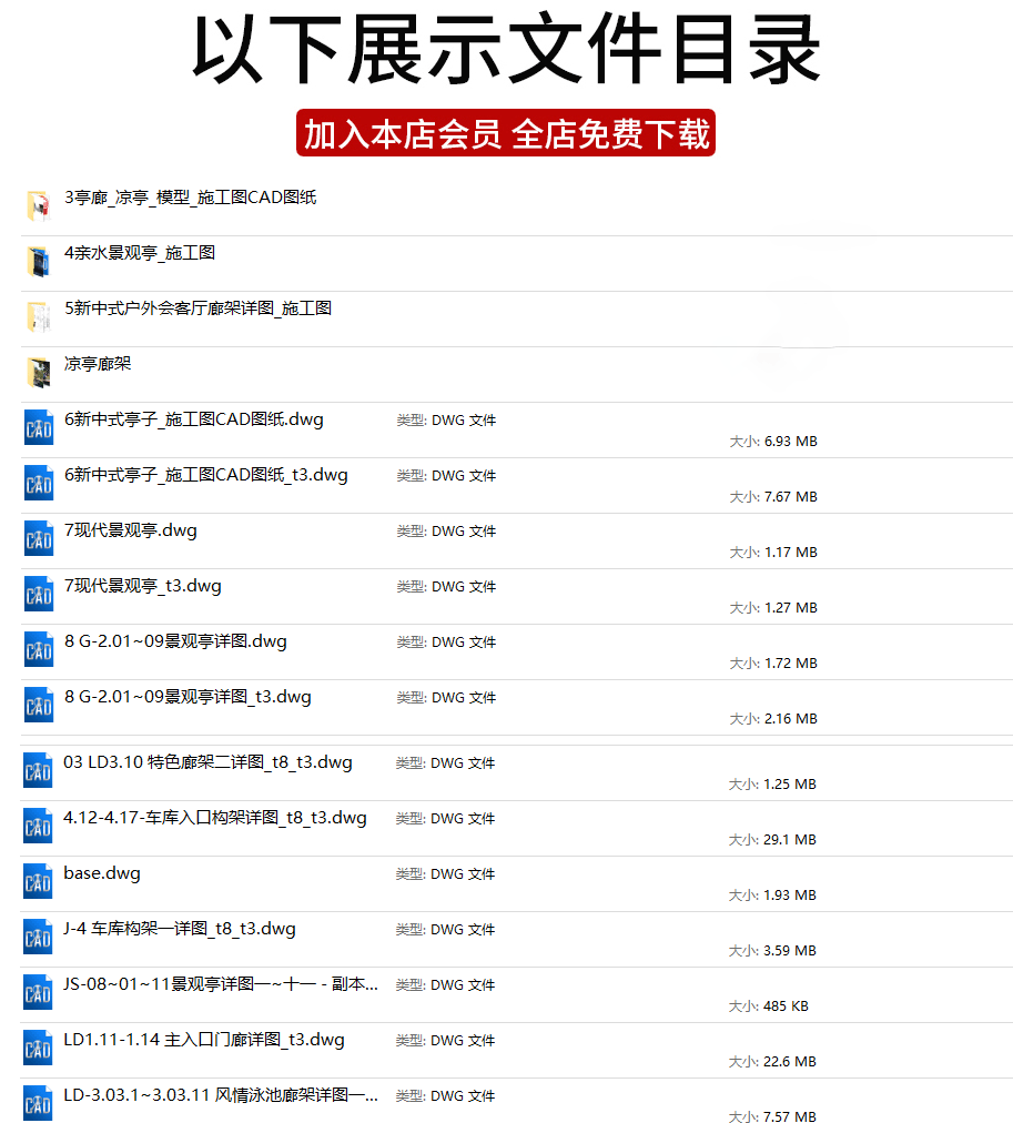 凉亭子亭廊CAD施工图纸中式廊架现代亲水景观亭车库构架门廊详图免费下载