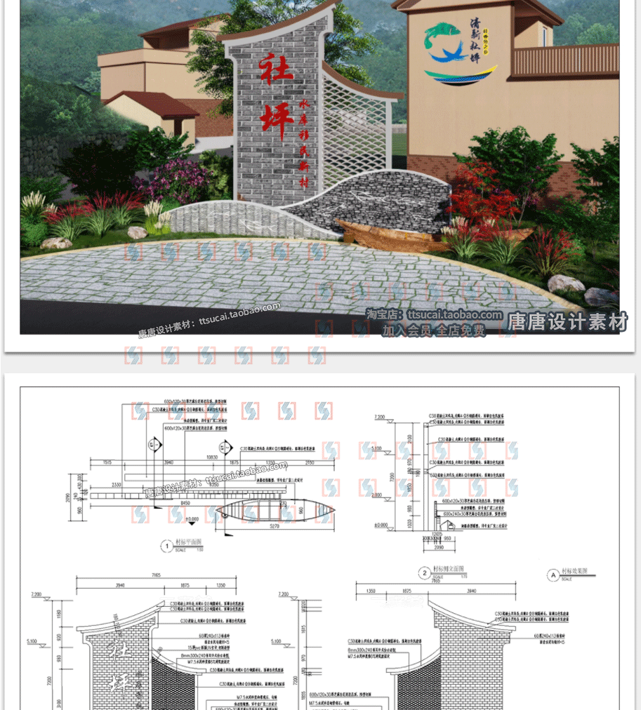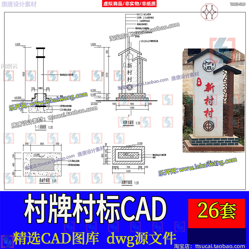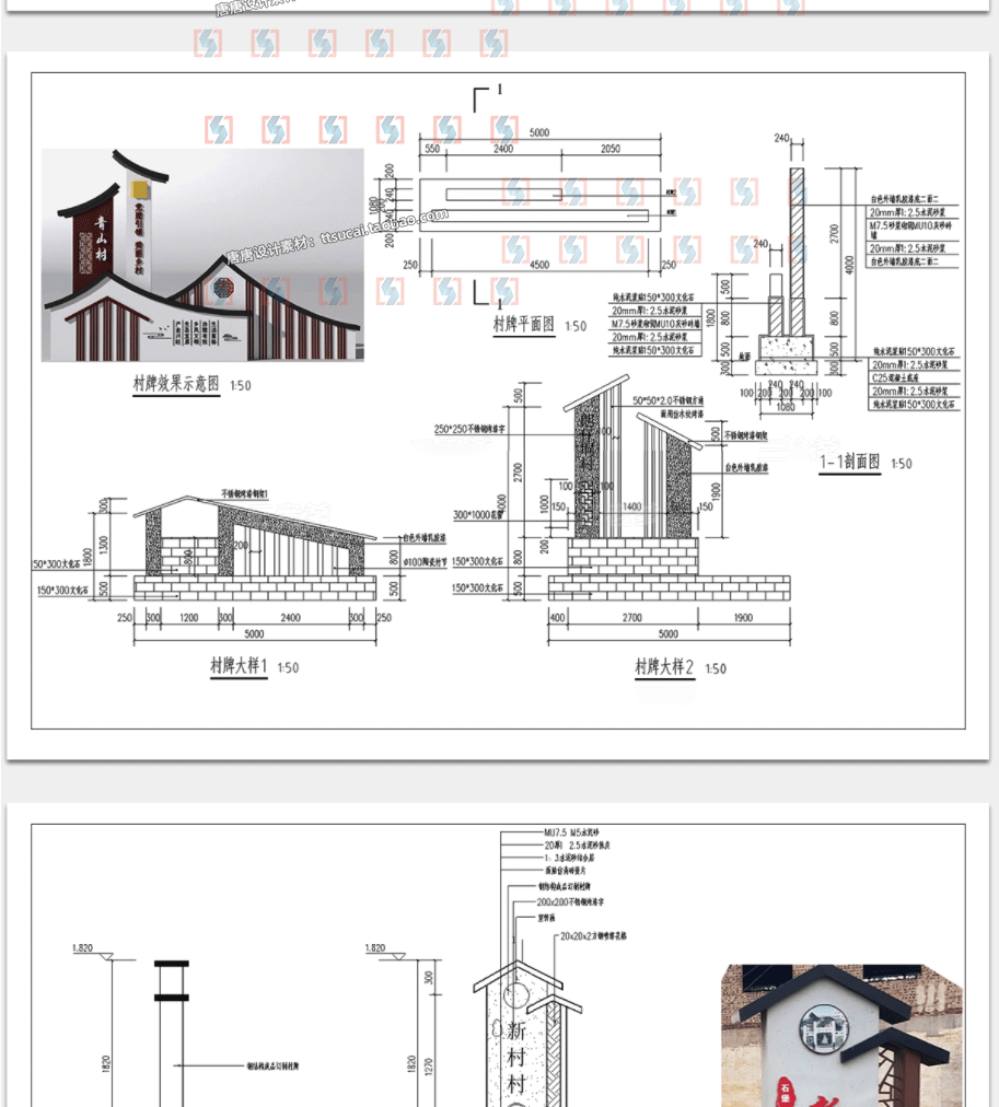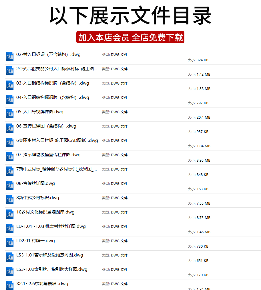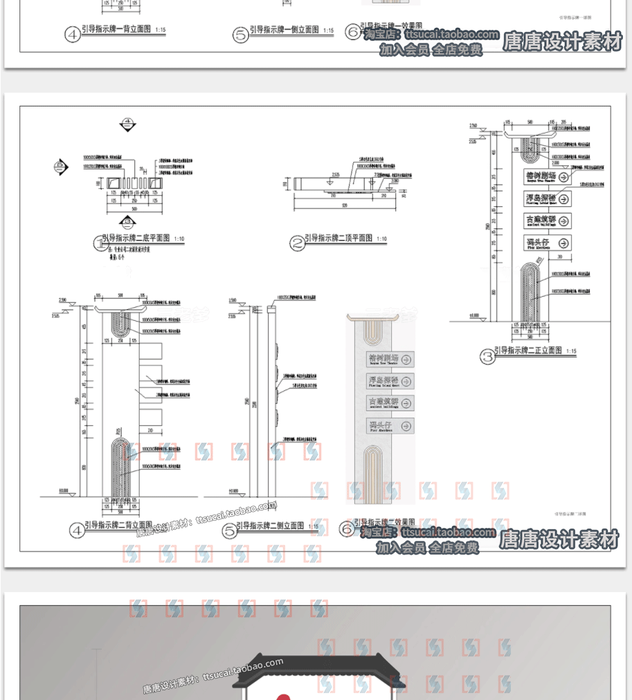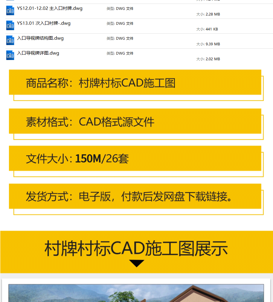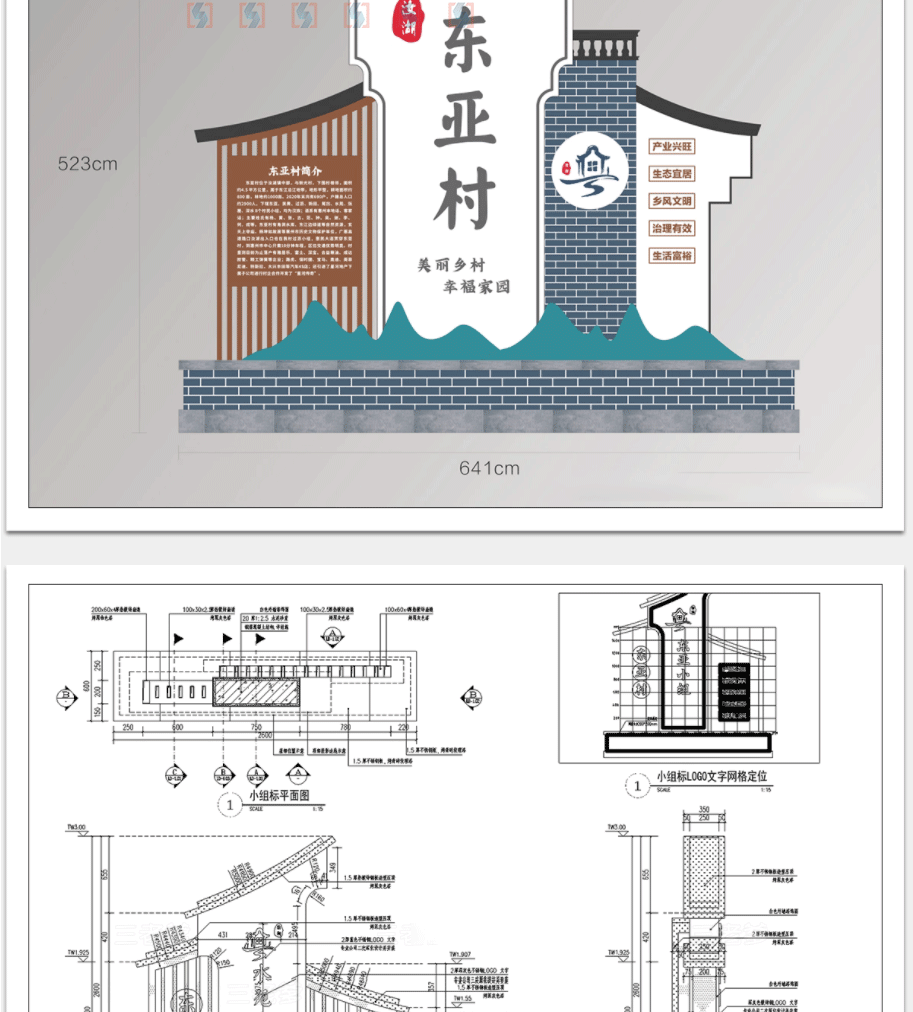 乡村入口村牌入口标识CAD施工图中式村口指示导视牌宣传栏详图库免费下载