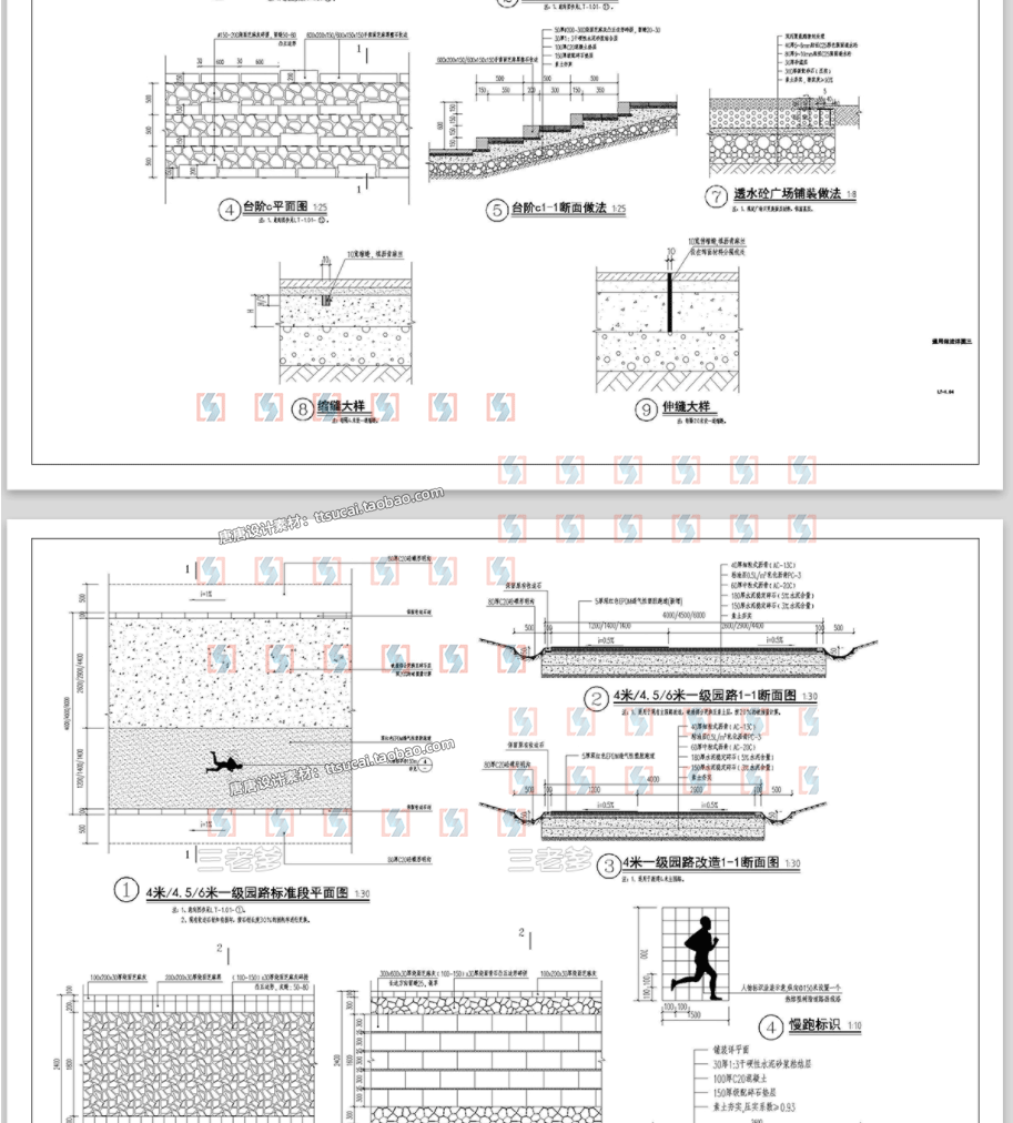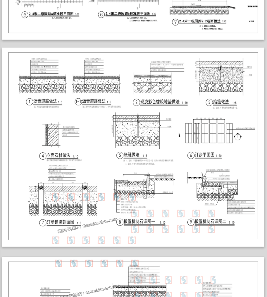 防腐木平台CAD施工图道路铺装材料透水沥青路面木栈道做法详图纸免费下载