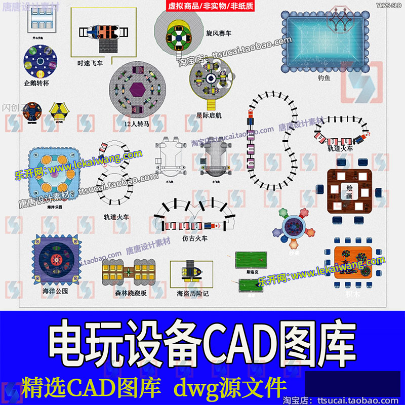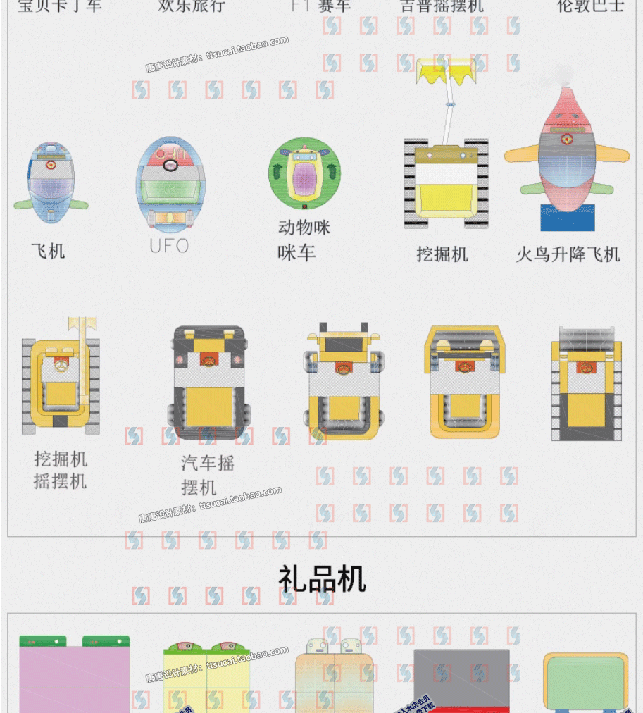 商业娱乐电玩城游戏赛车射击亲子娃转马摇摆机设备CAD图纸库模块免费下载