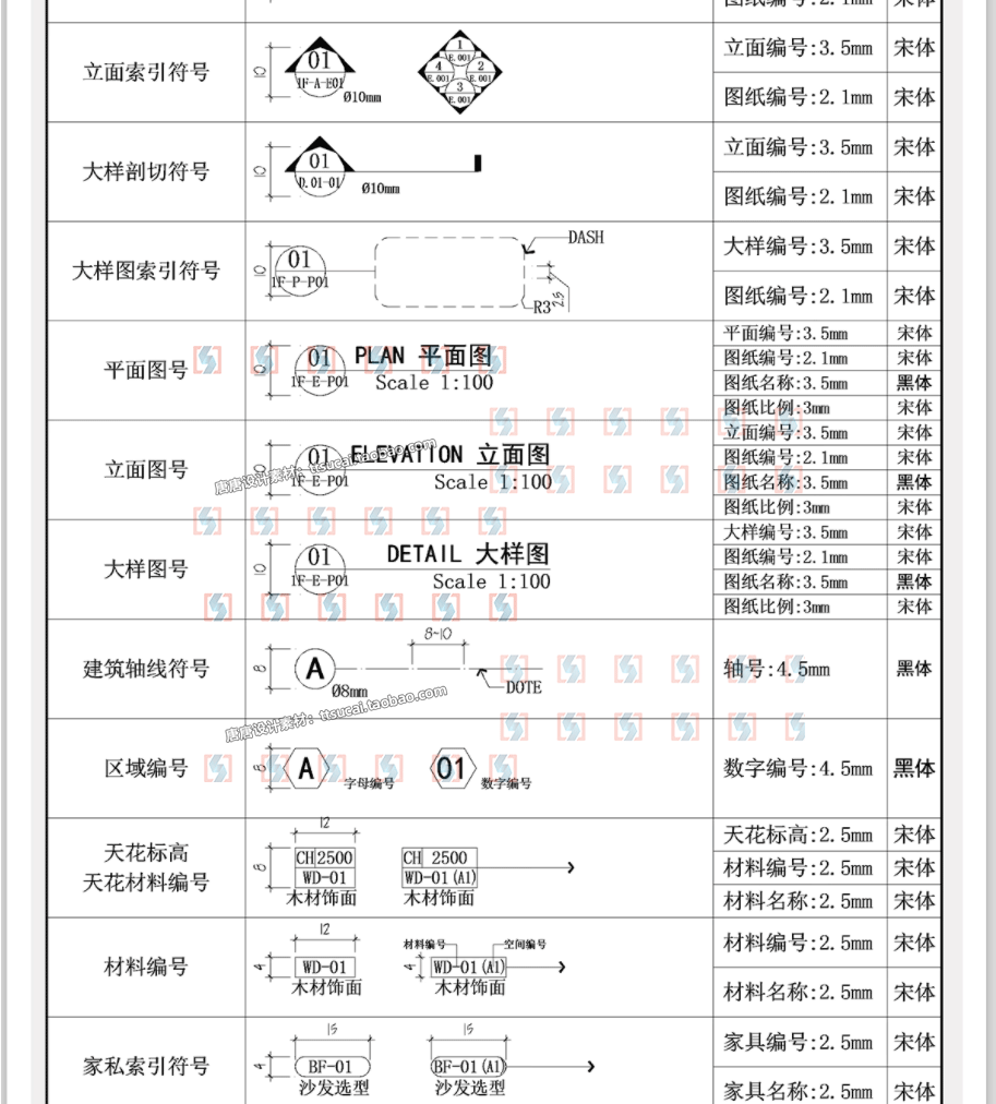 室内设计CAD制图图号规范平立面索引符号家装工装标准施工图例库免费下载