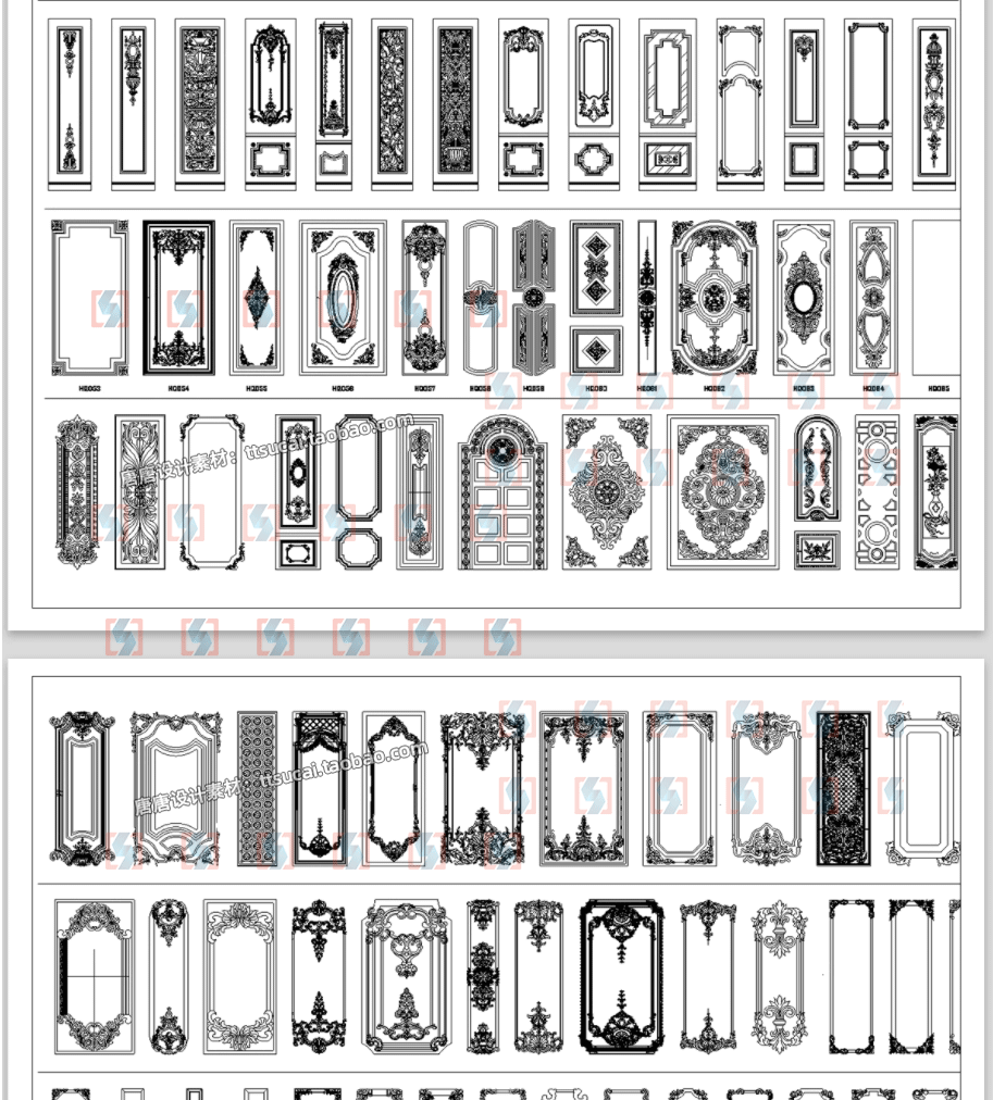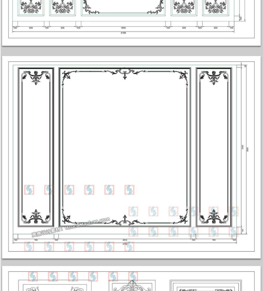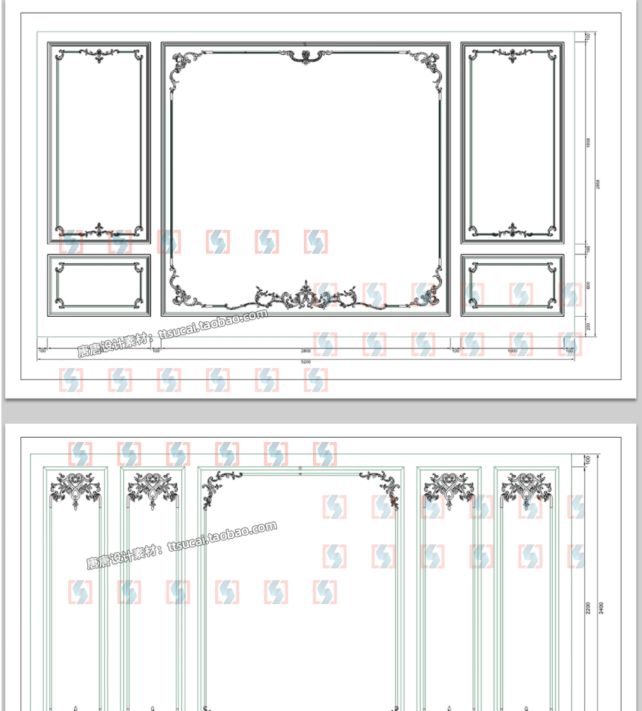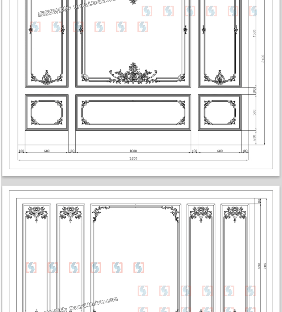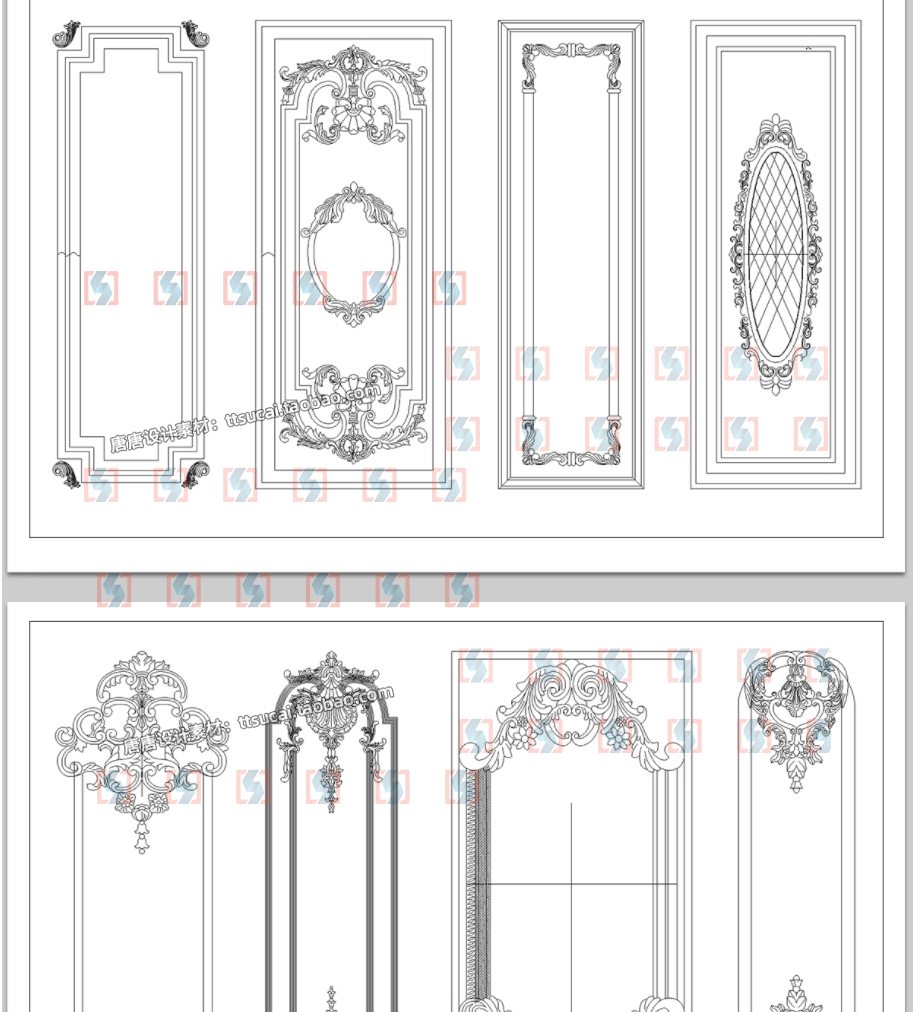 法式奢华巴洛克洛可可整木全屋护墙板雕花背景墙设计cad立面图纸免费下载