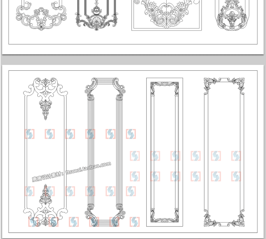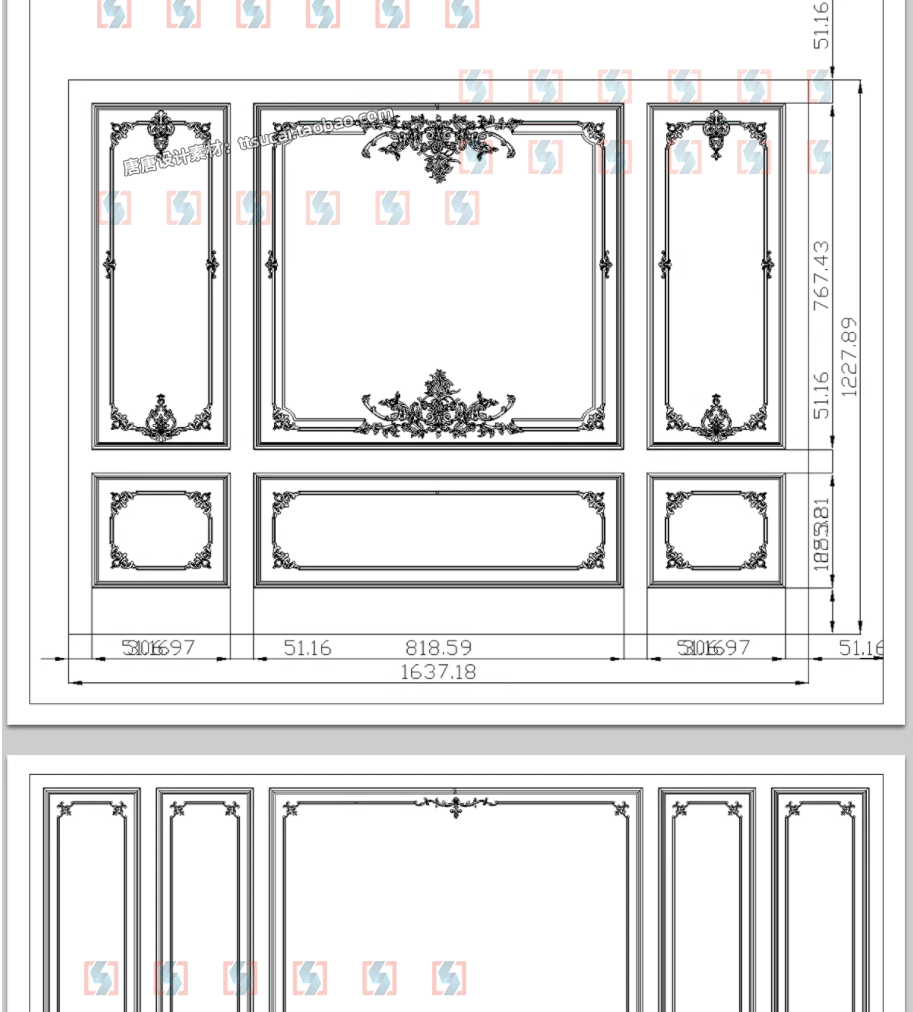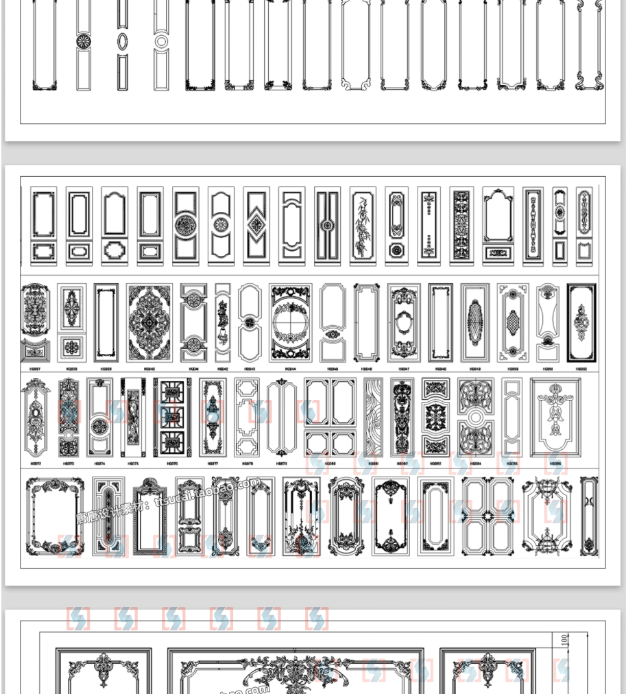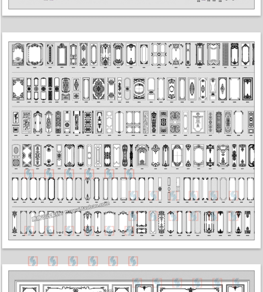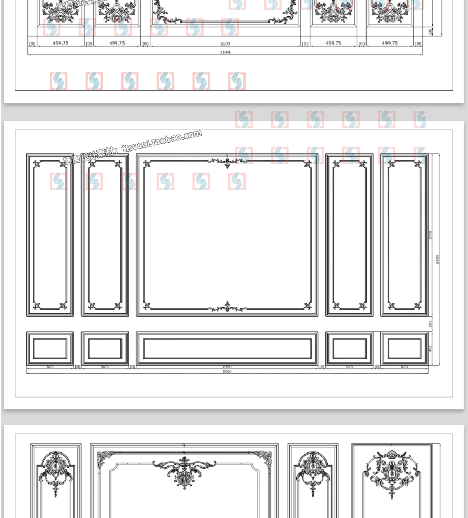 法式奢华巴洛克洛可可整木全屋护墙板雕花背景墙设计cad立面图纸免费下载