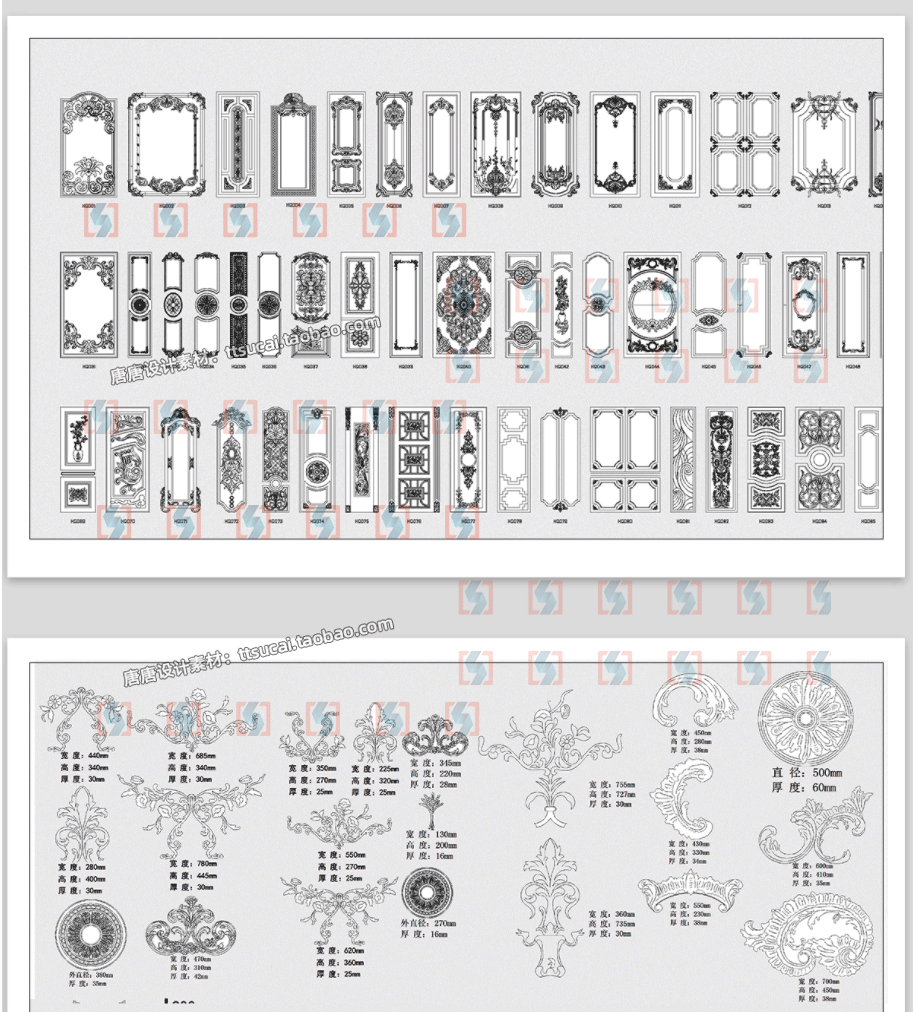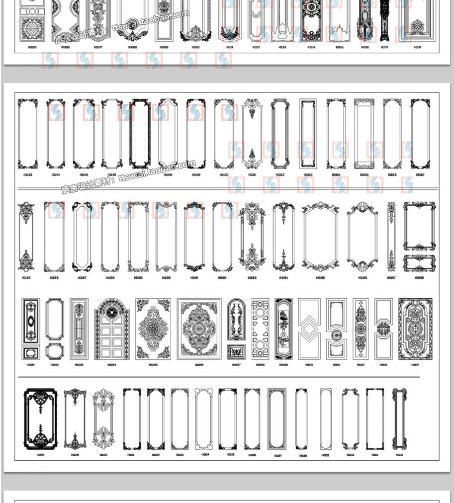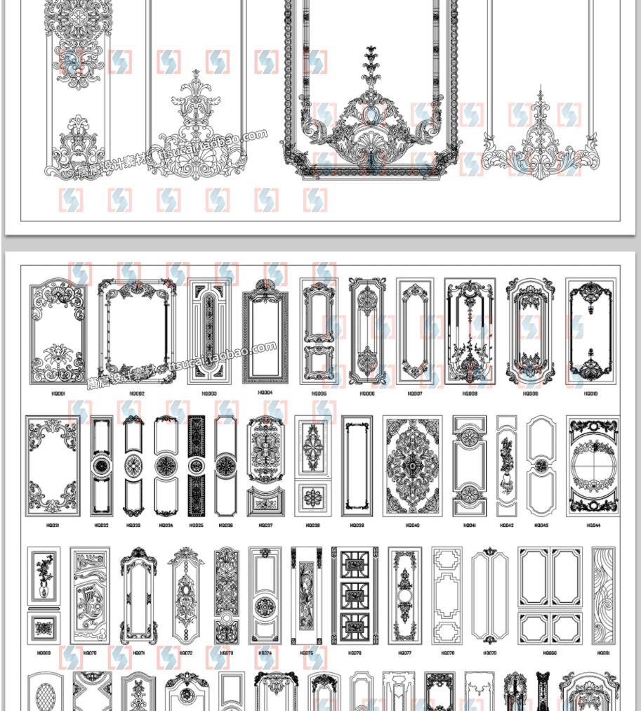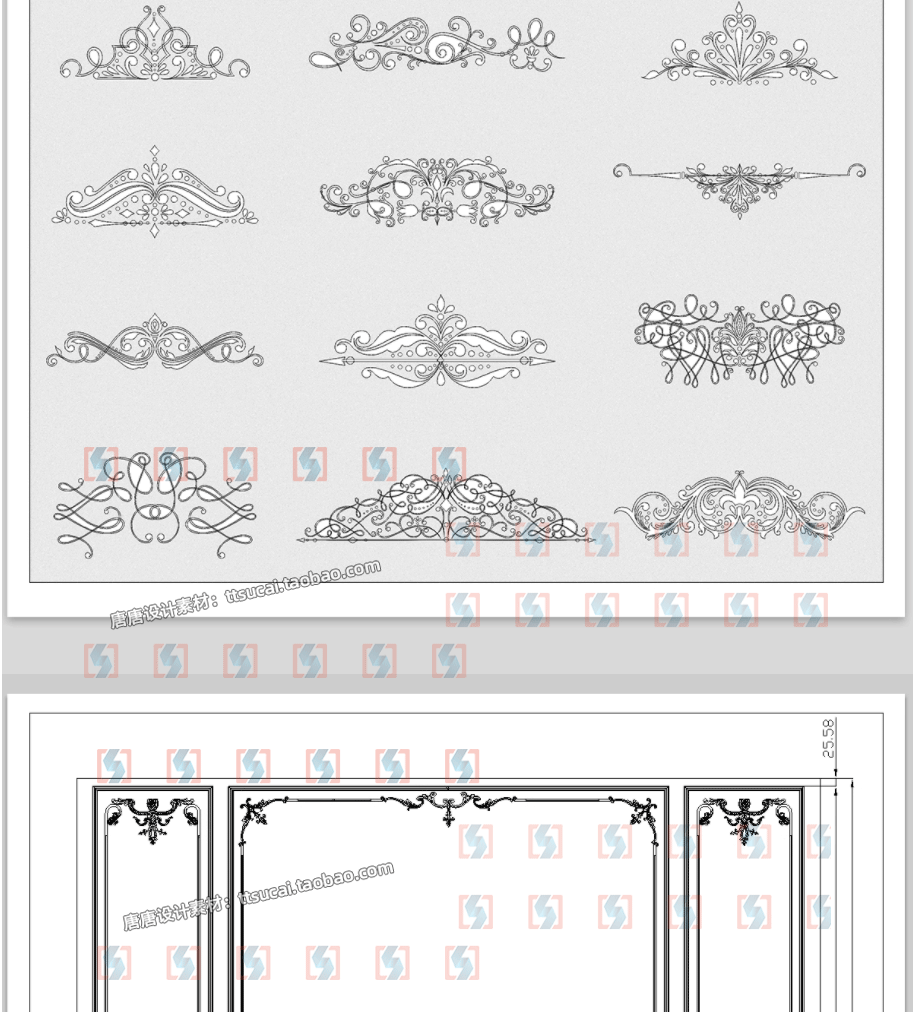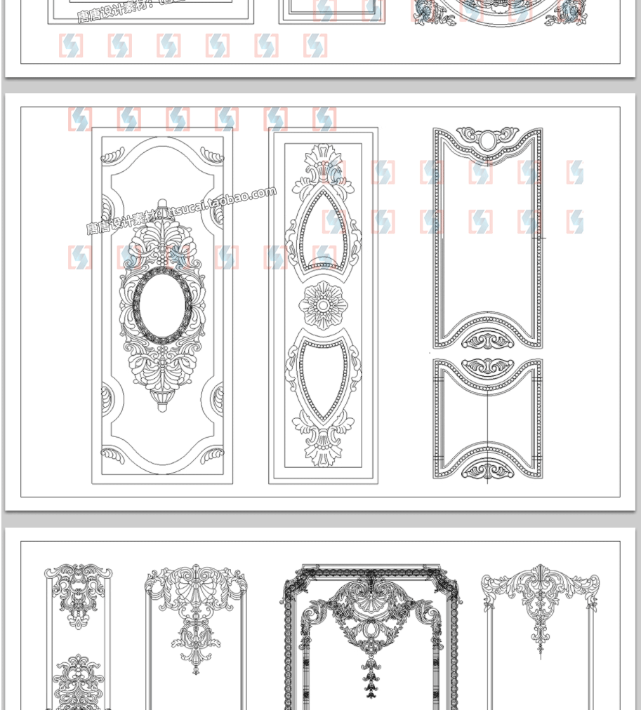 法式奢华巴洛克洛可可整木全屋护墙板雕花背景墙设计cad立面图纸免费下载