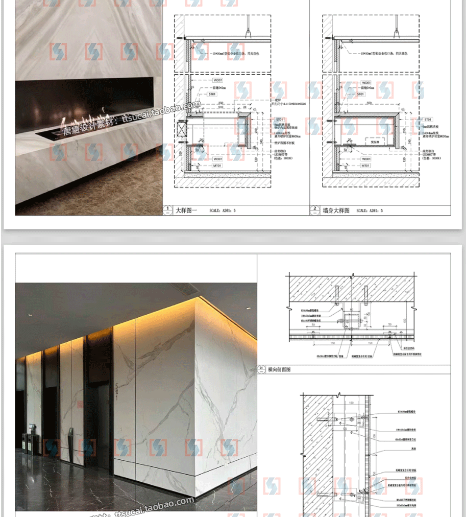 全屋定制电视背景墙CAD施工图 大理石客厅电视墙电视柜木饰面免费下载