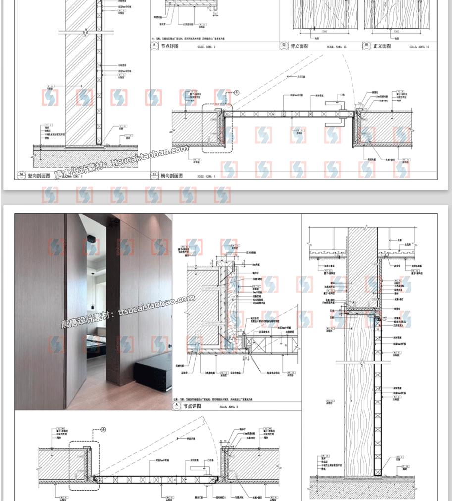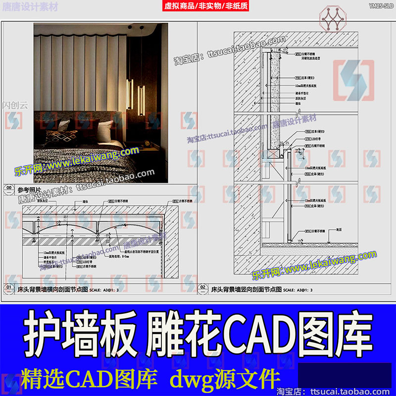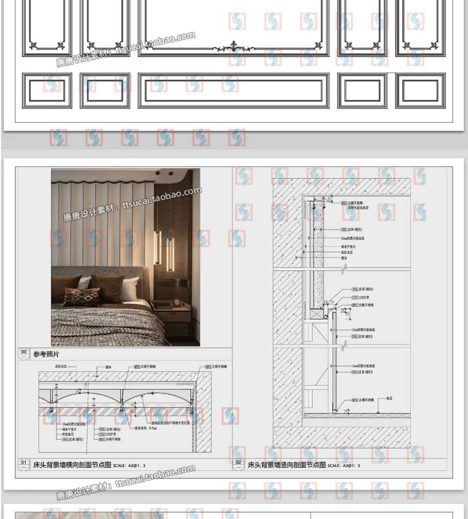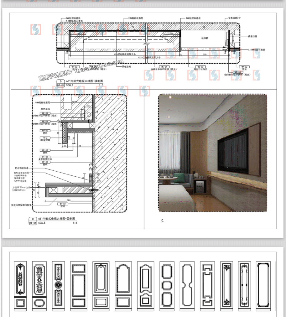 法式巴洛克风格整木护墙板电视沙发背景墙模块cad立剖面施工图纸免费下载