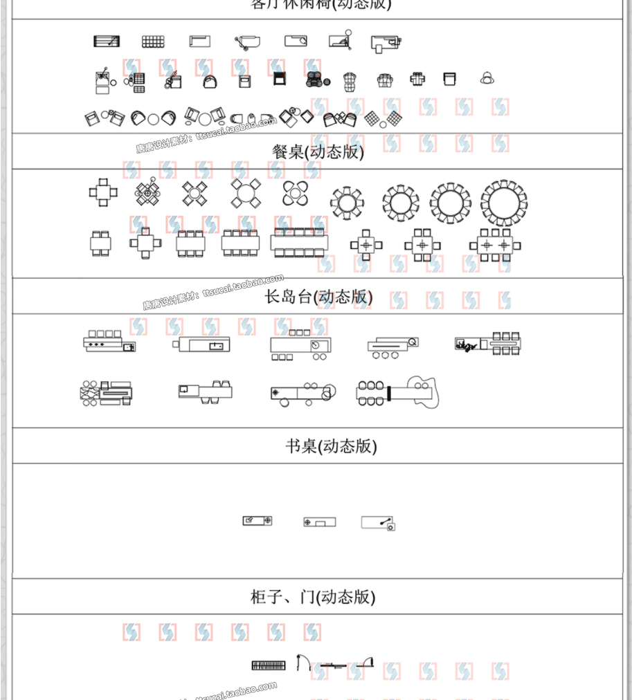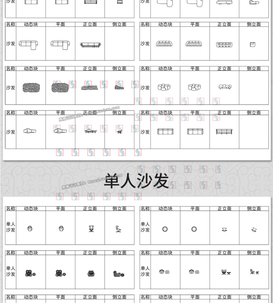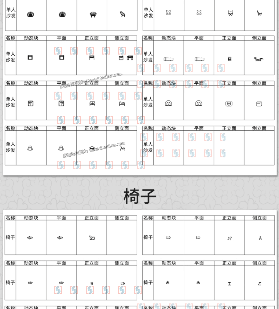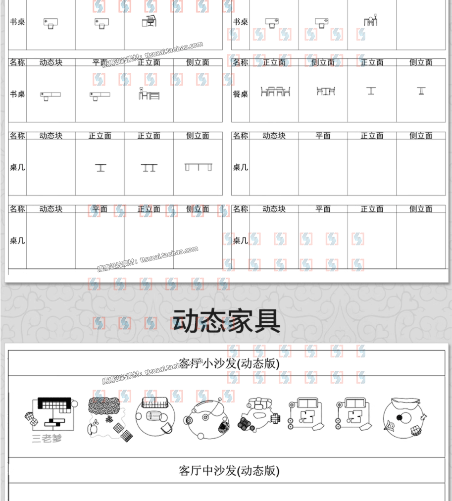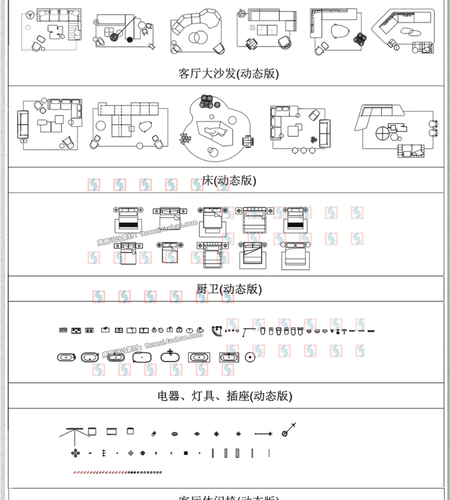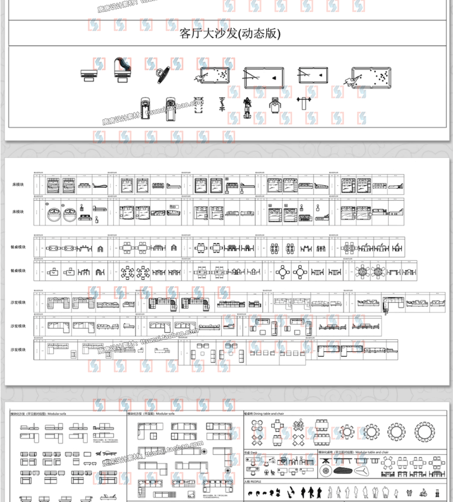 全新网红家装平立面模块化家具cad图库室内设计软装动态图块免费下载