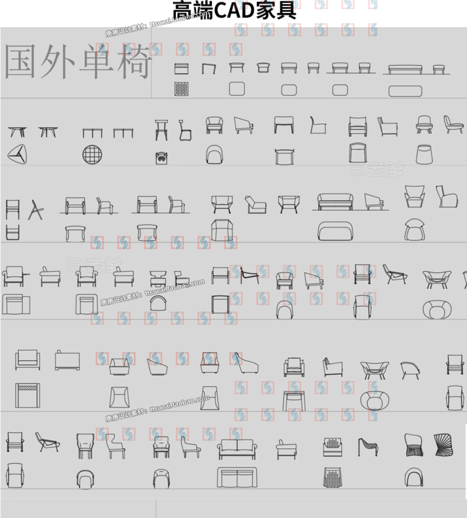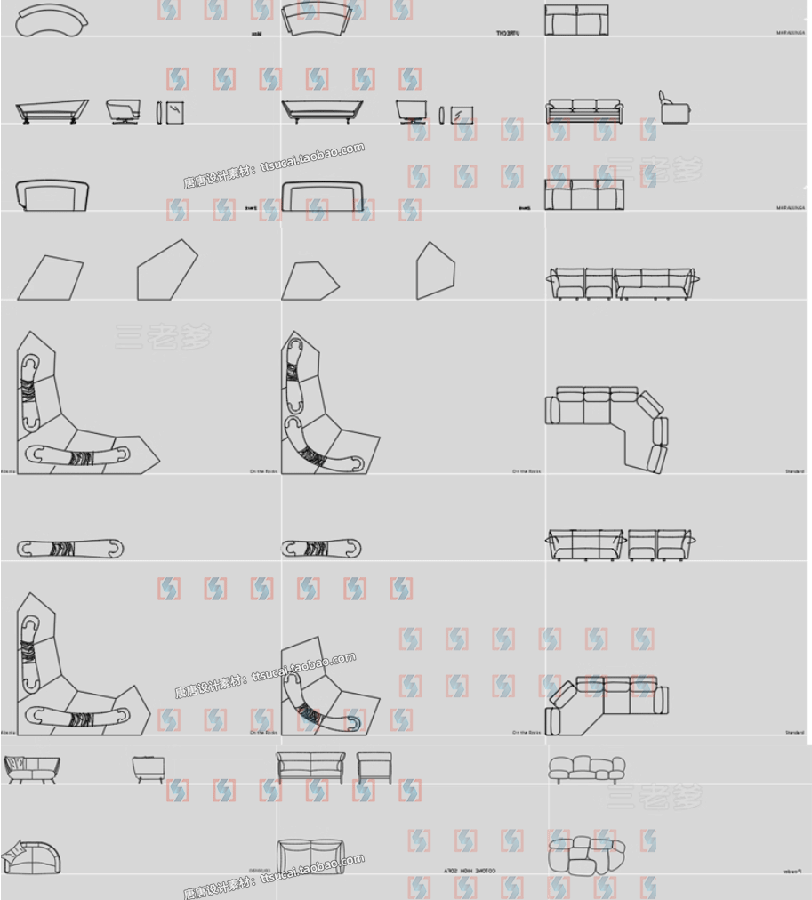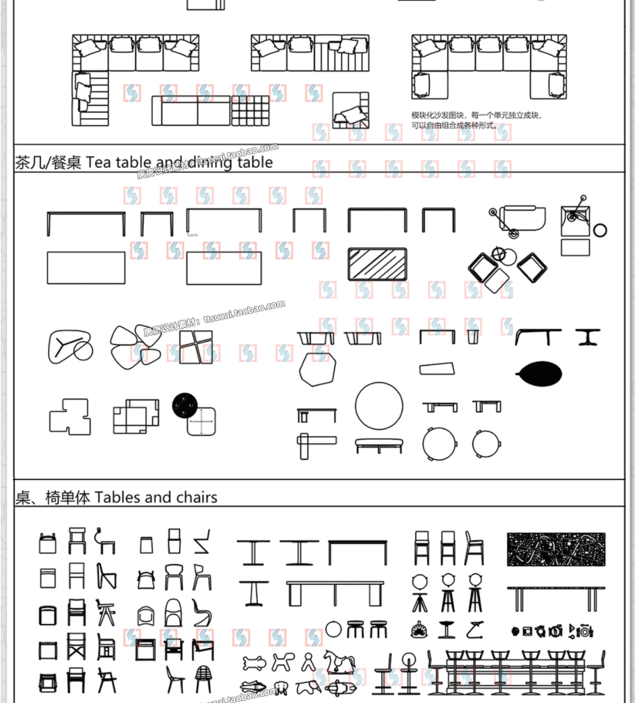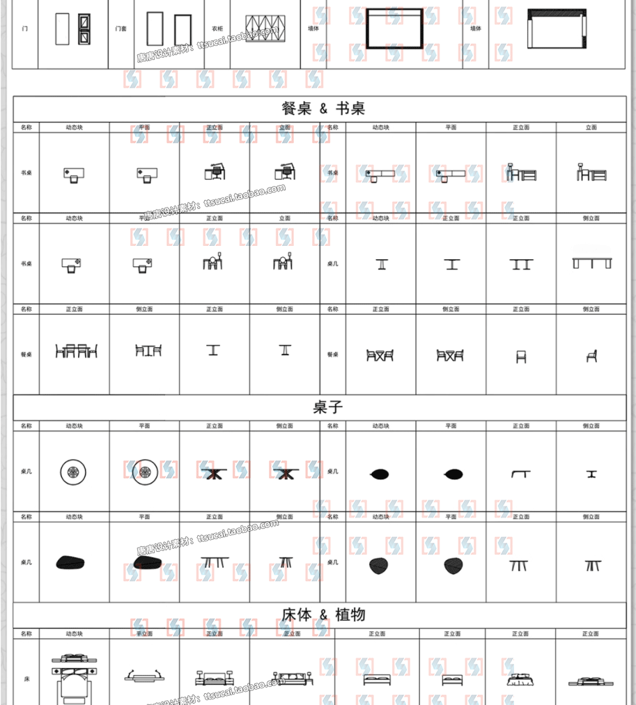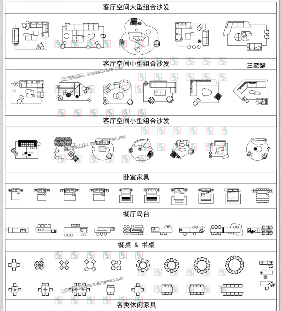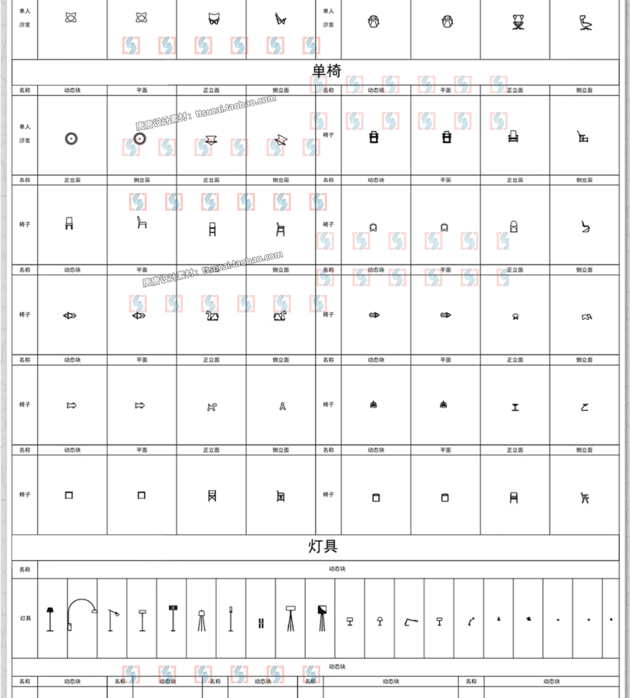 全新网红家装平立面模块化家具cad图库室内设计软装动态图块免费下载