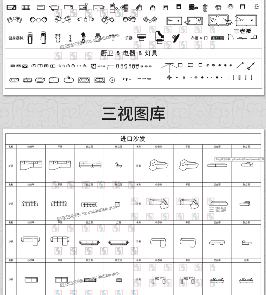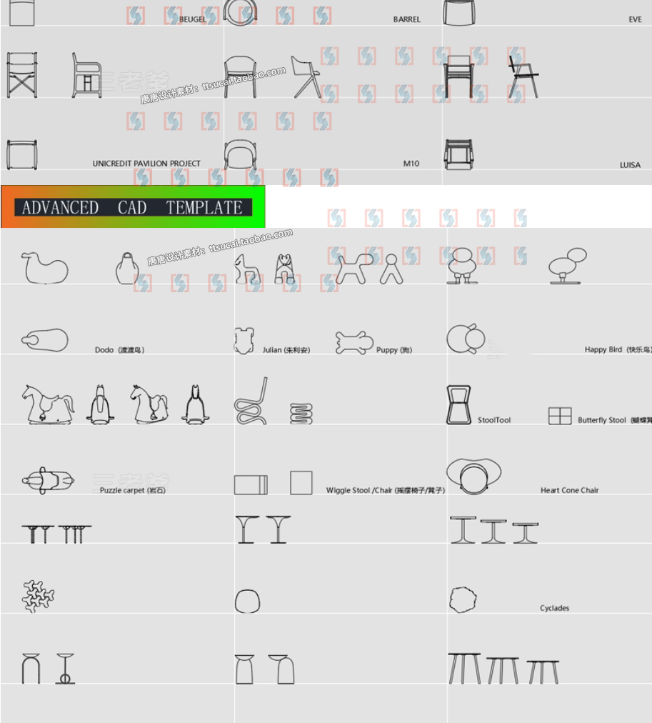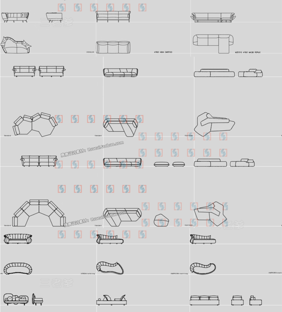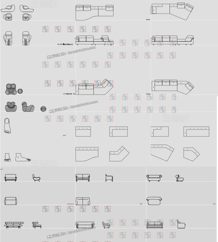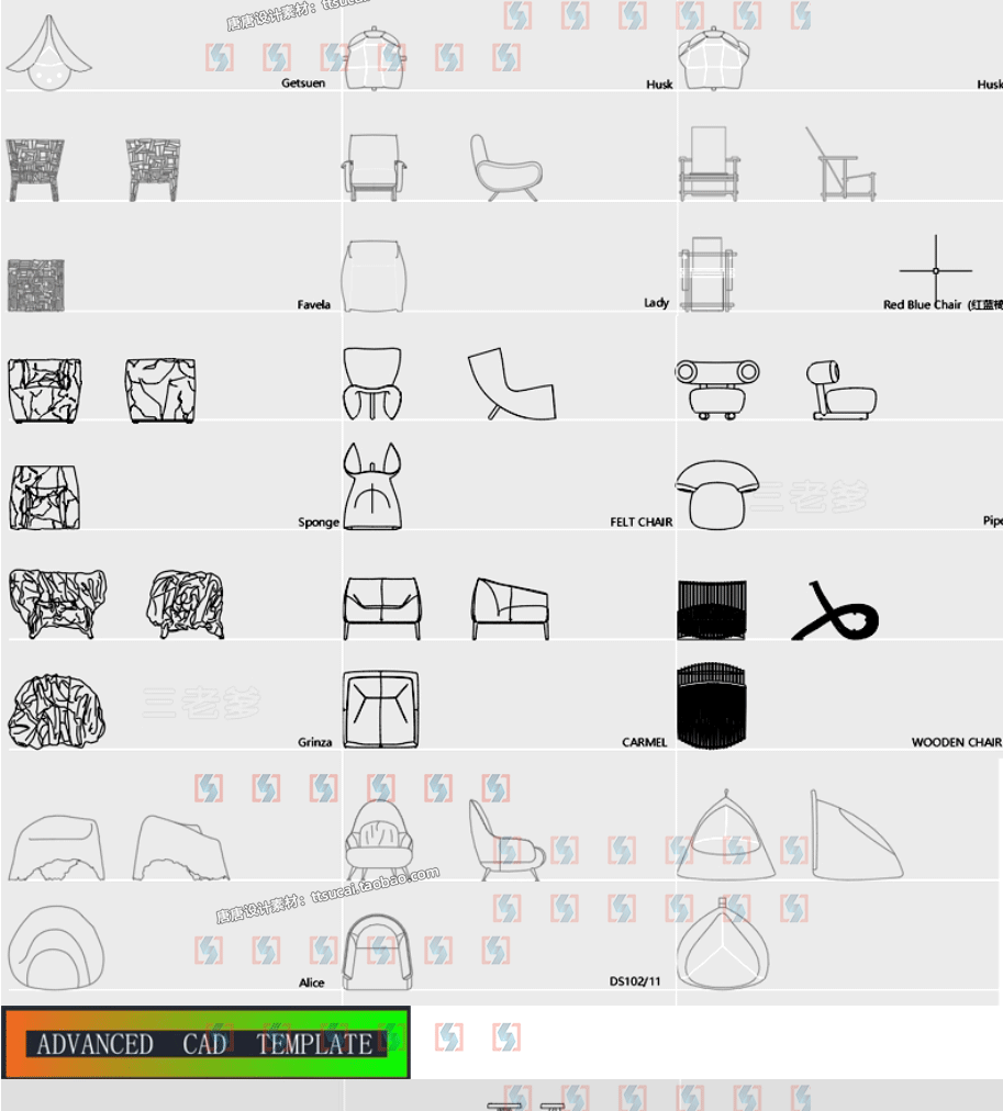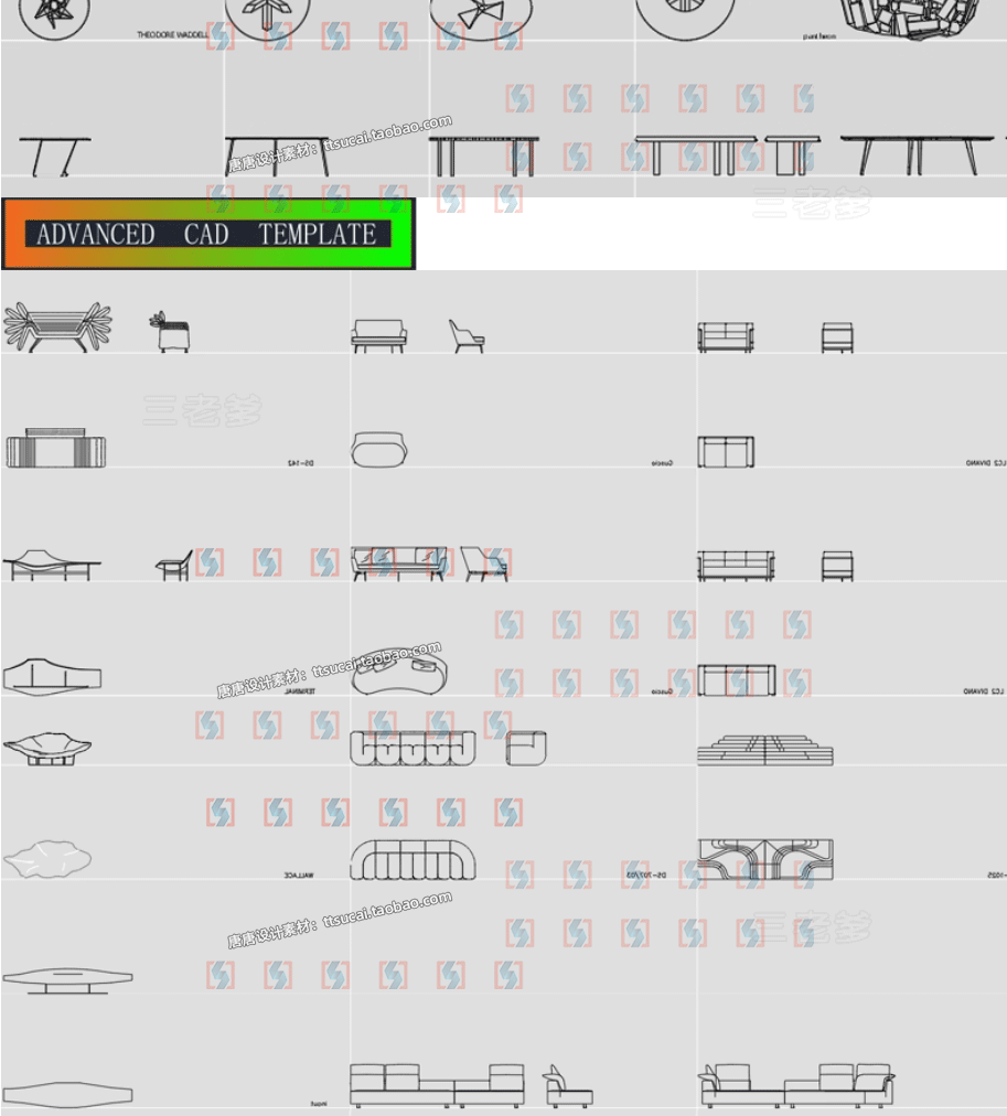 全新网红家装平立面模块化家具cad图库室内设计软装动态图块免费下载