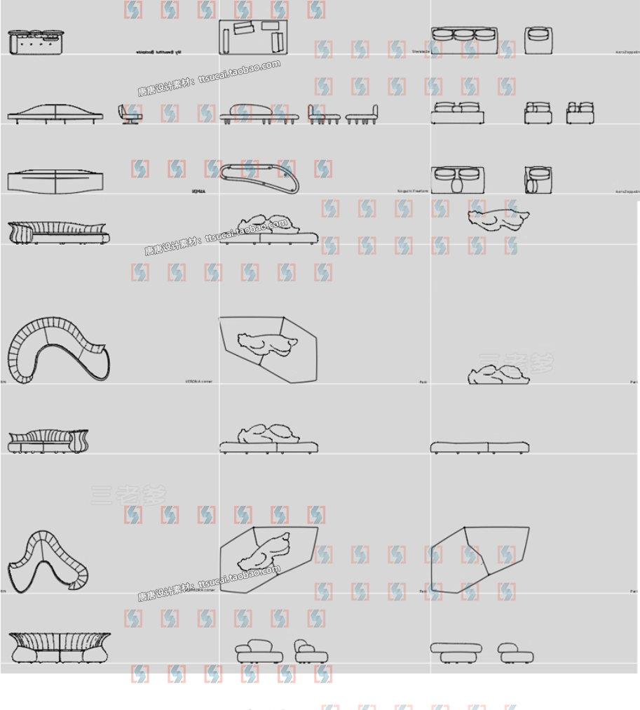网红高端家具CAD图库室内极简现代进口异形沙发餐桌平面模块免费下载