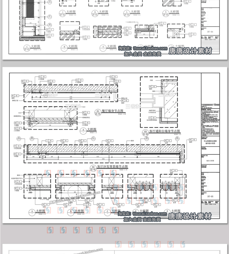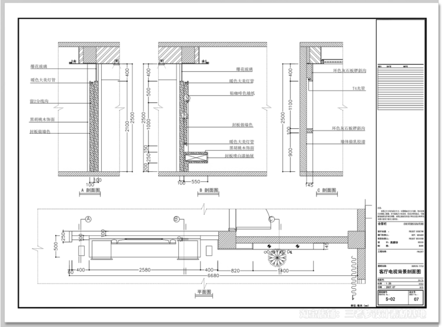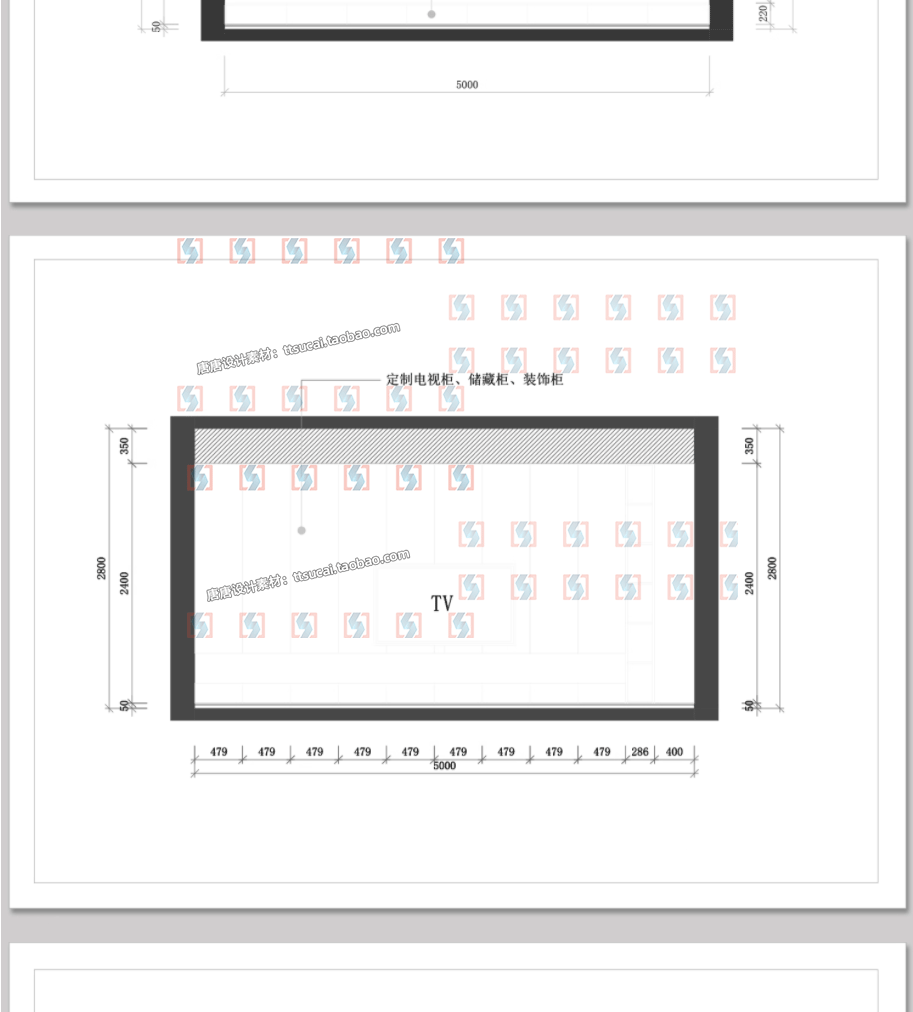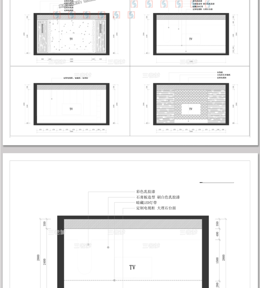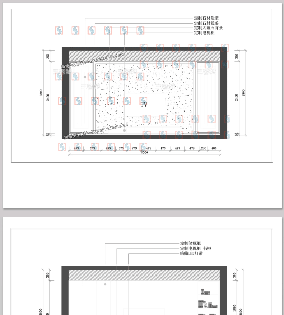 全屋定制电视背景墙CAD施工图 大理石客厅电视墙电视柜木饰面免费下载