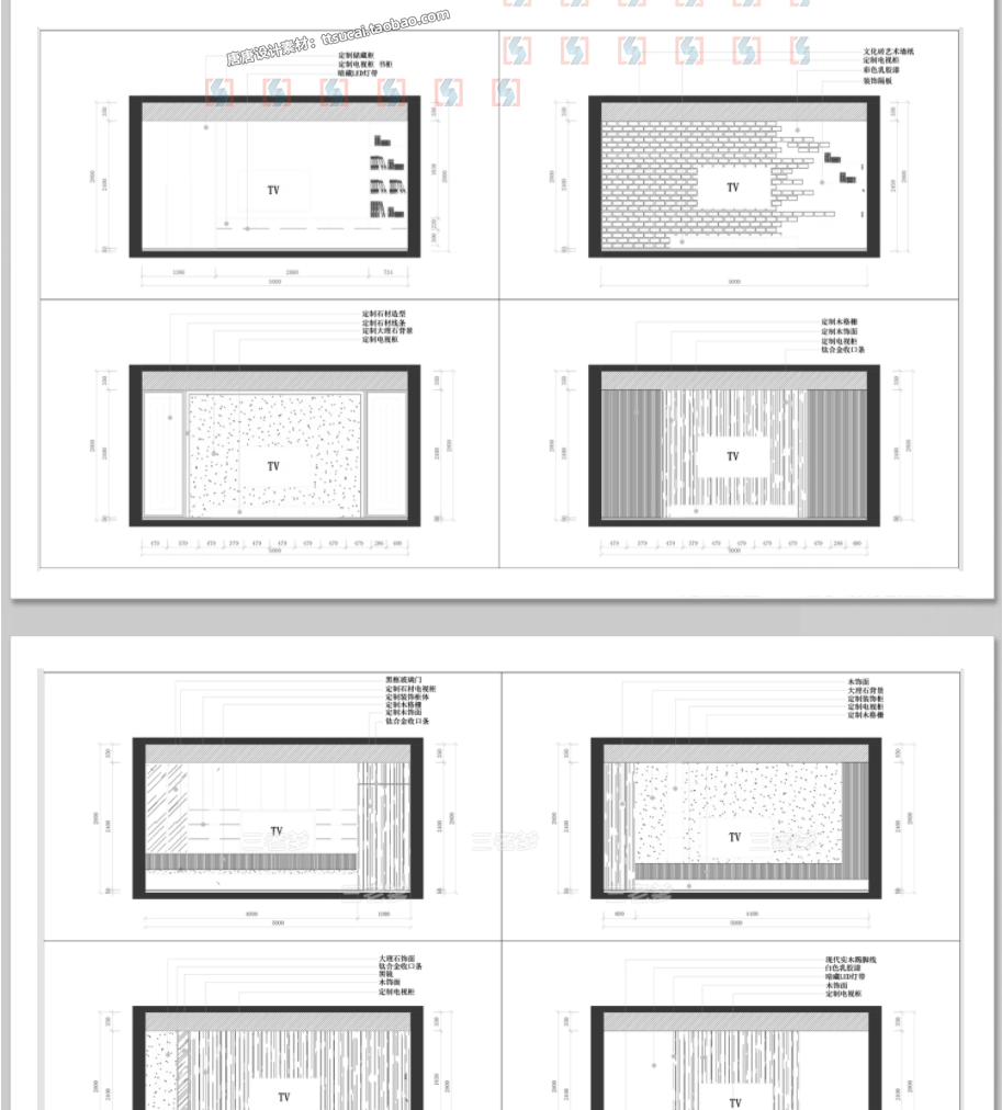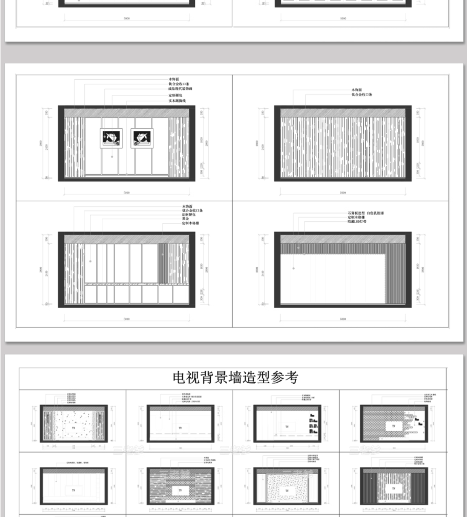 家装室内设计电视石材卧室床头客餐厅沙发玄关背景墙cad立面图库免费下载