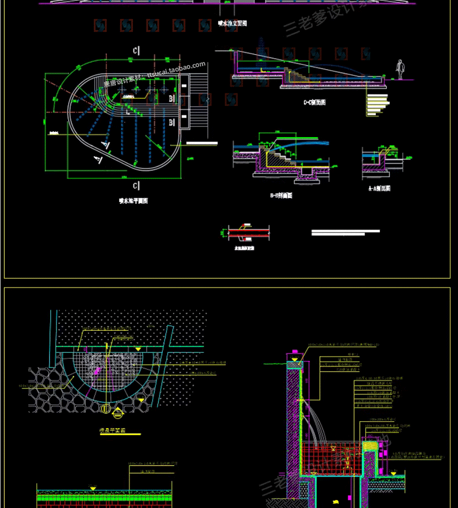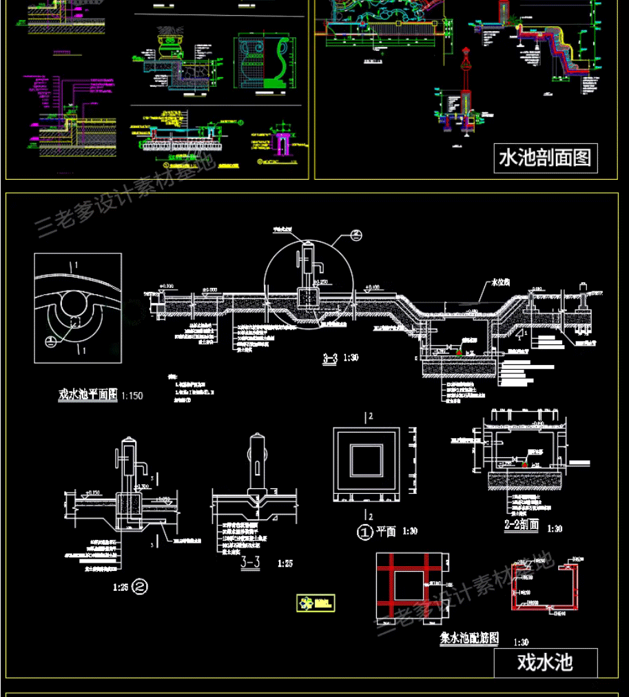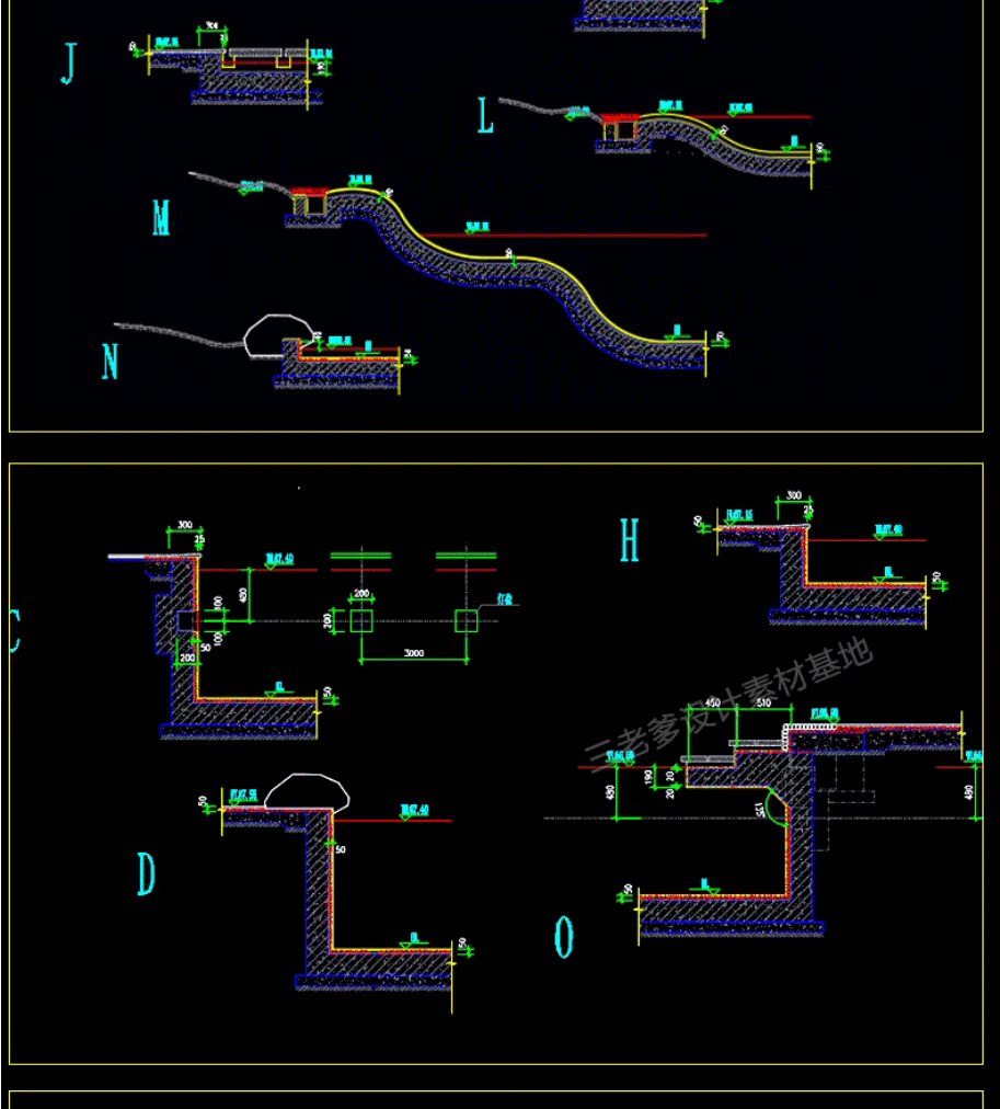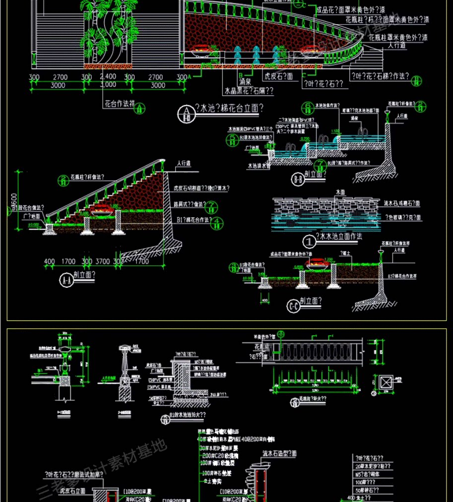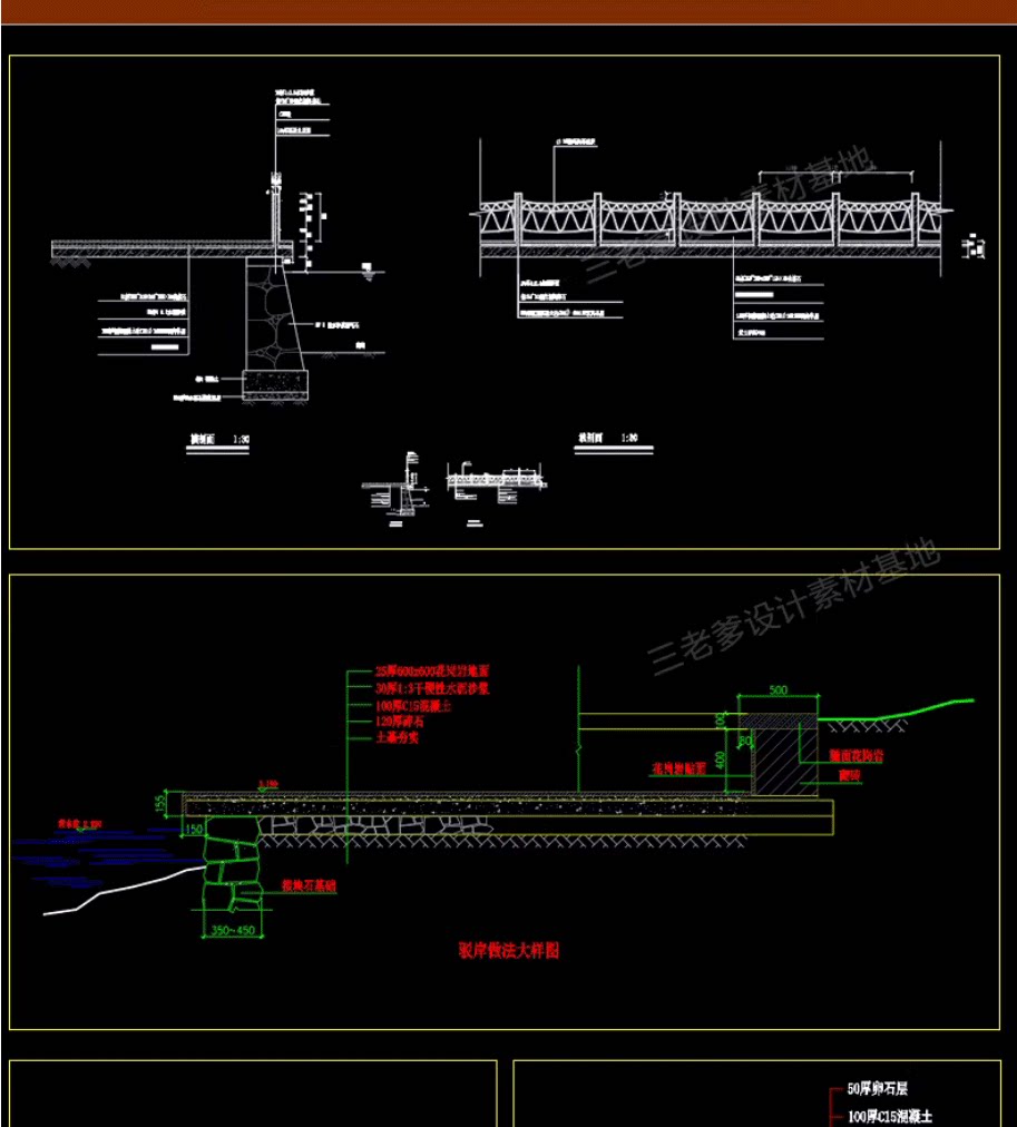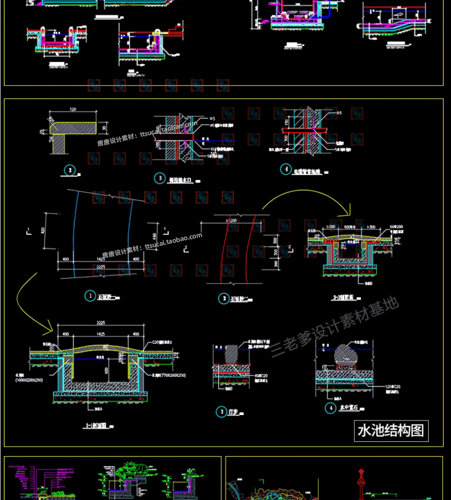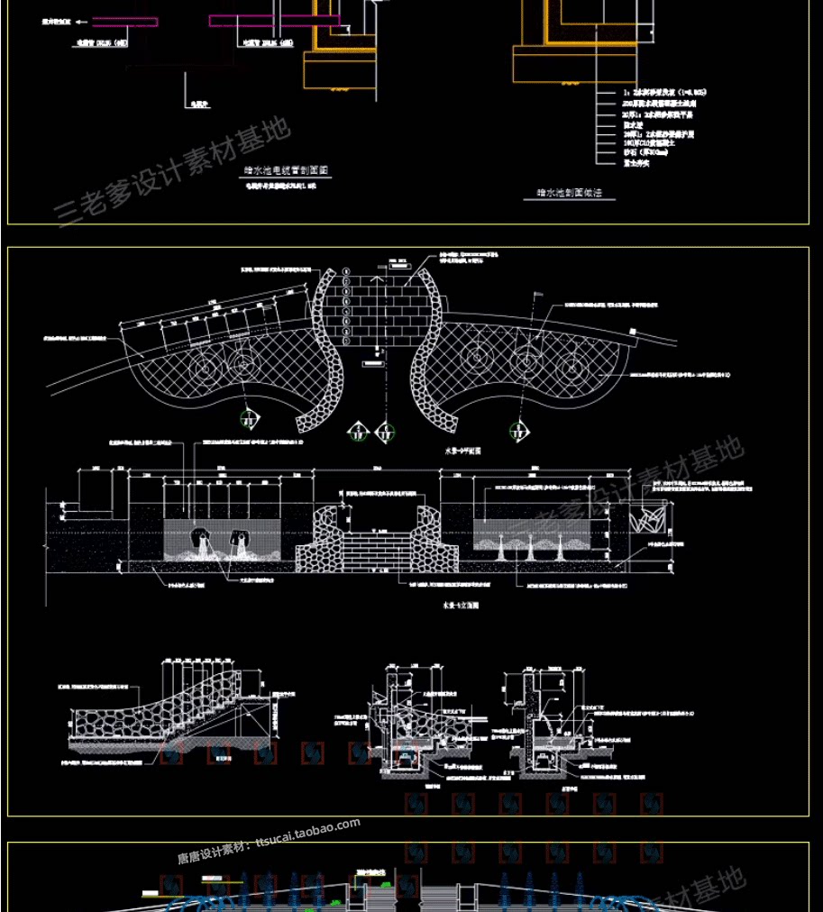 园林景观水景图库跌水园桥汀步平台栈台驳岸喷泉水榭CAD施工图纸免费下载