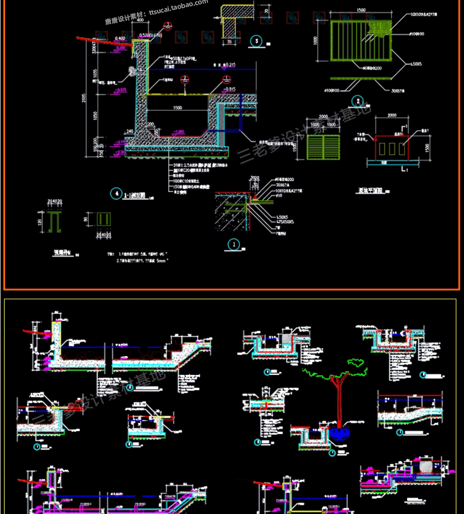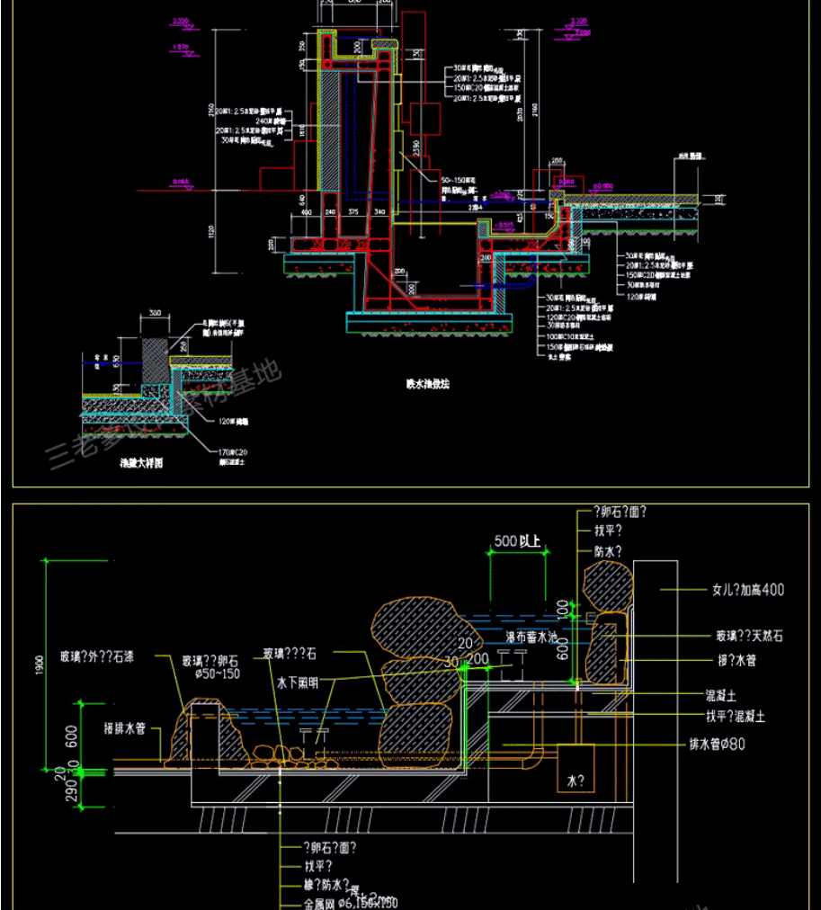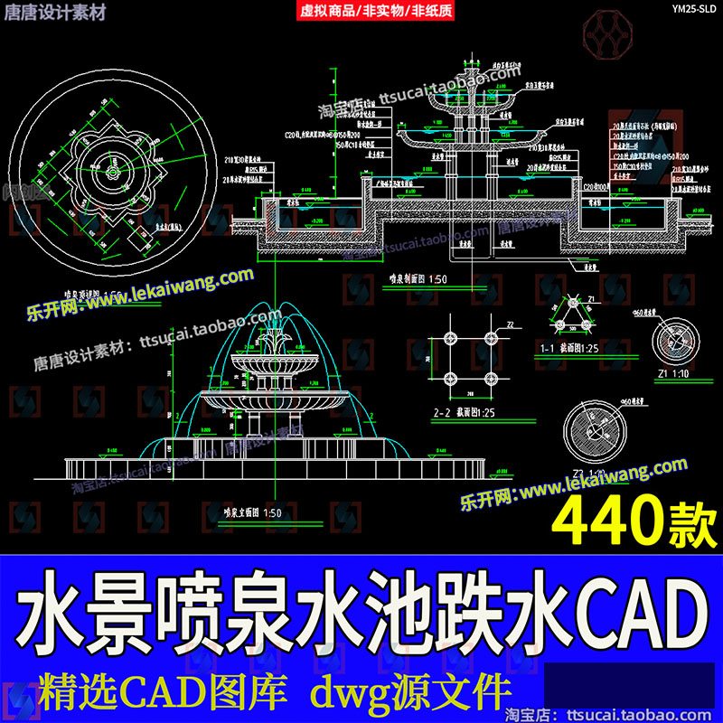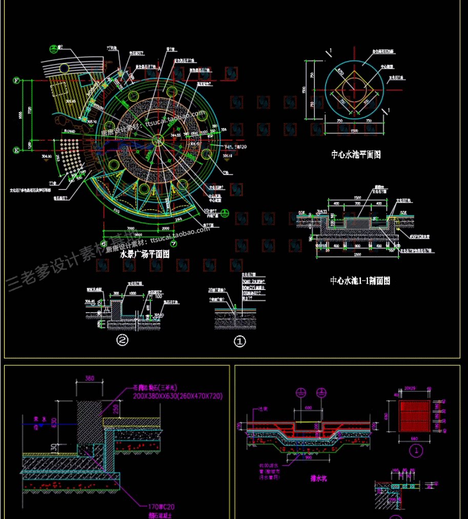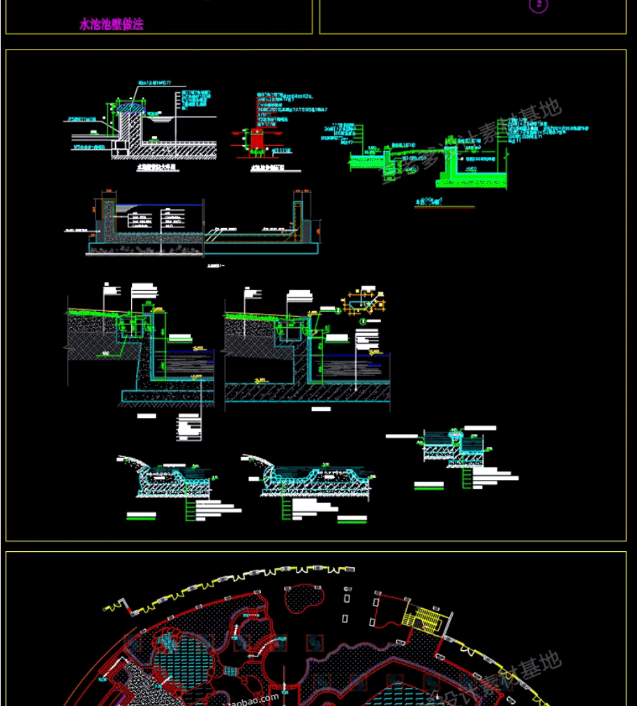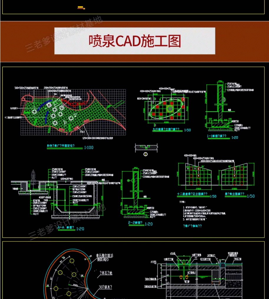 园林景观水景图库跌水园桥汀步平台栈台驳岸喷泉水榭CAD施工图纸免费下载