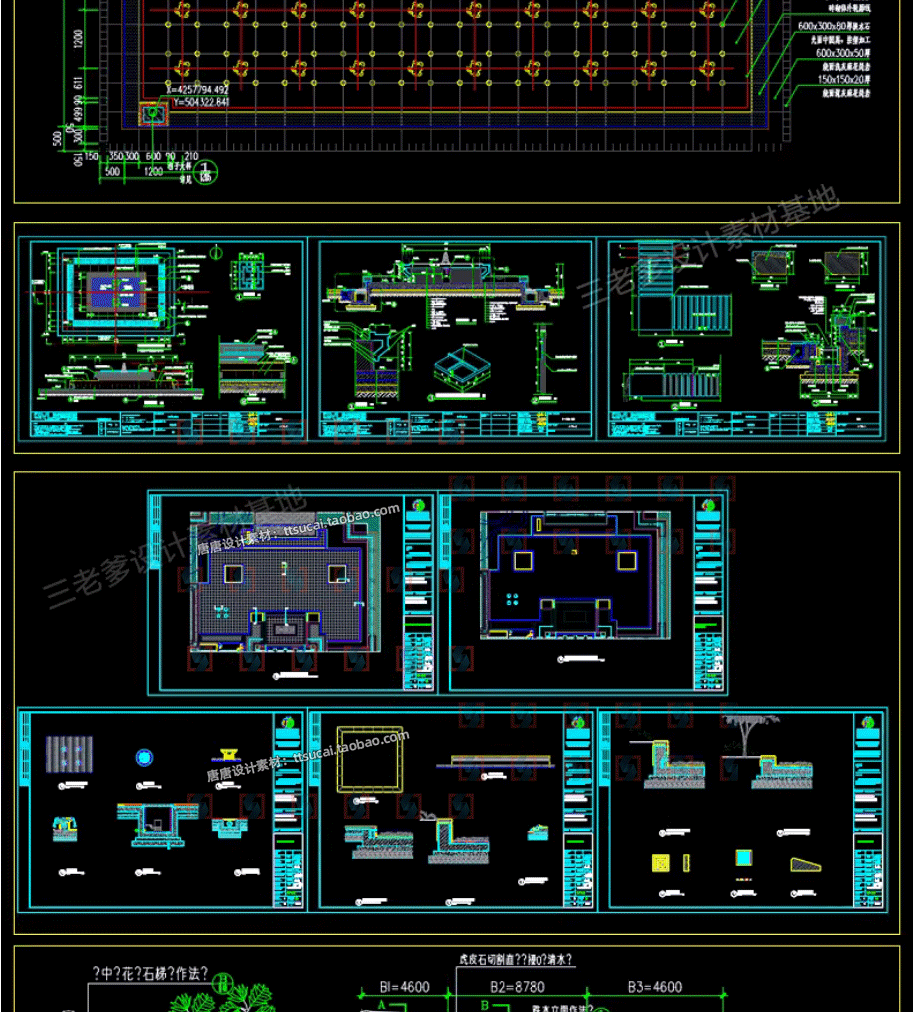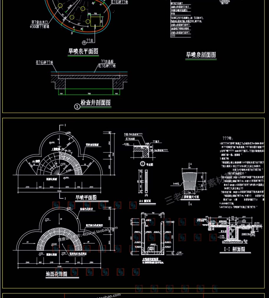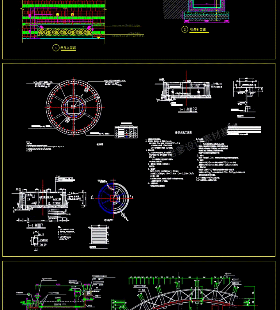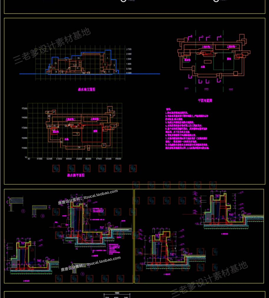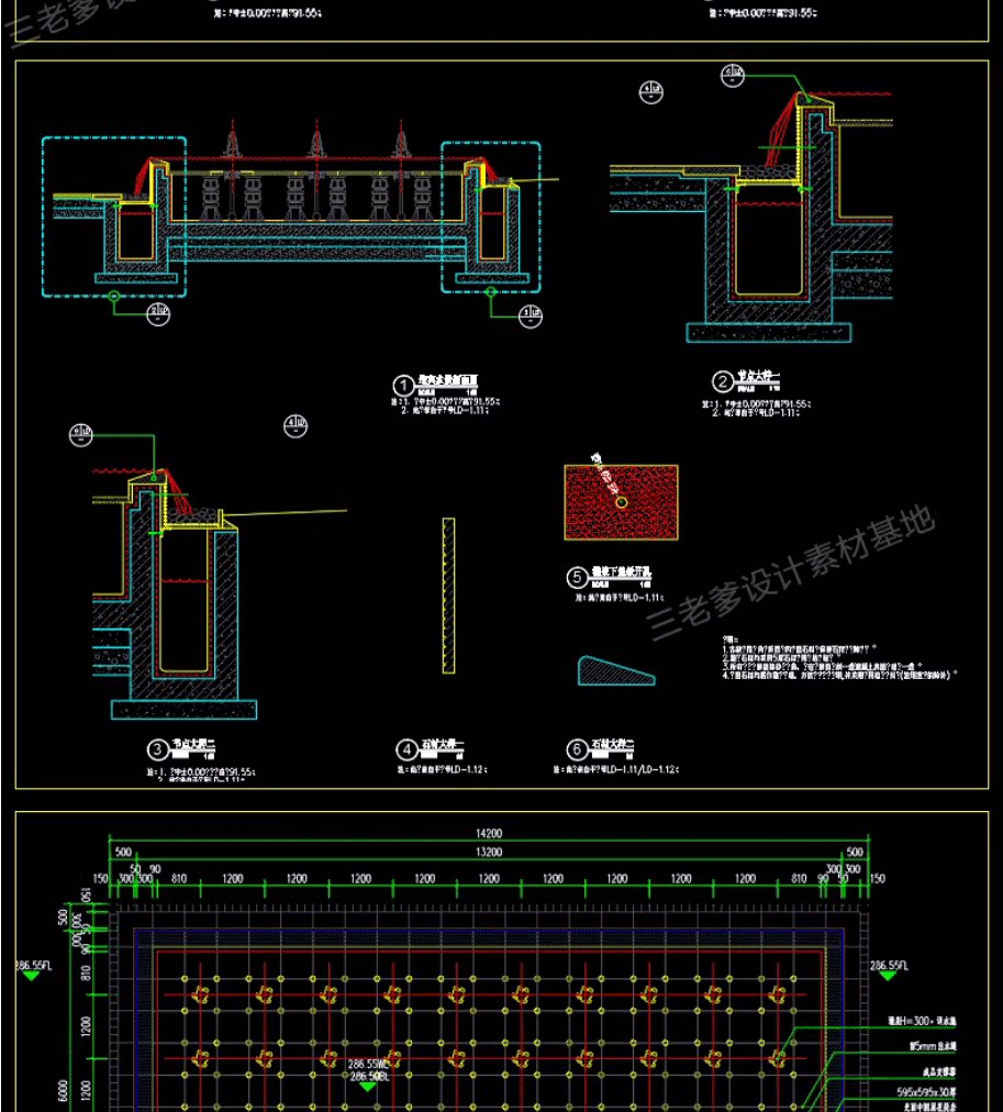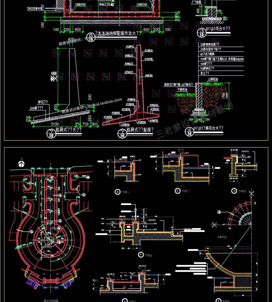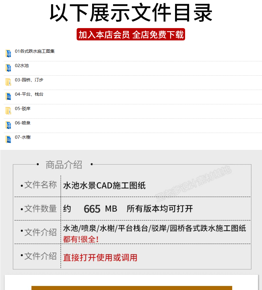 园林景观水景图库跌水园桥汀步平台栈台驳岸喷泉水榭CAD施工图纸免费下载