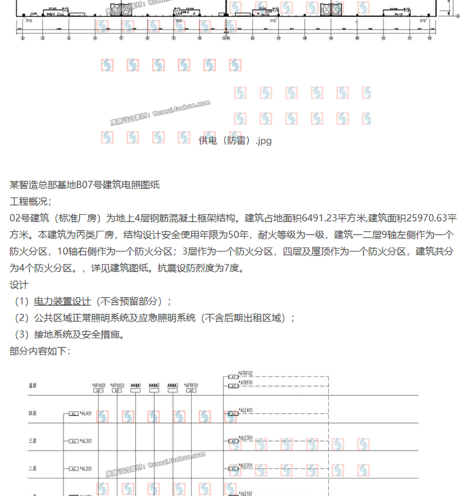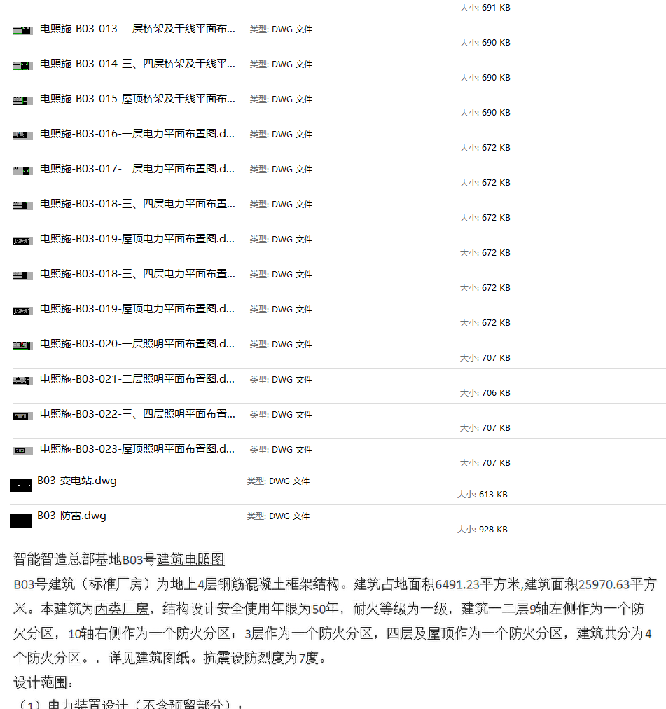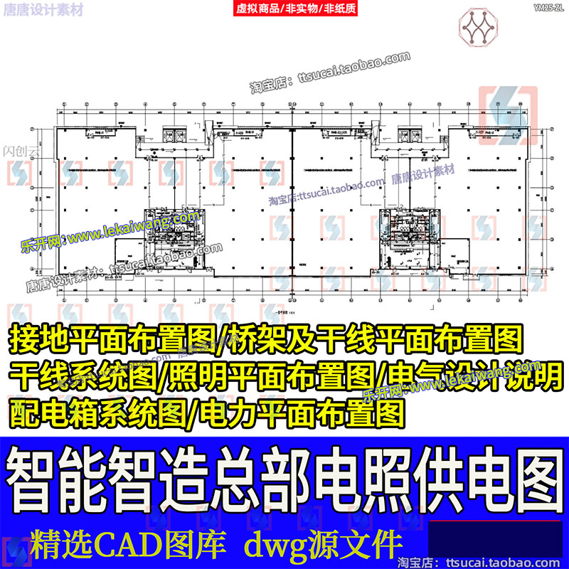 4层智能智造总部基地厂房建筑电照CAD施工图供电照明电力平面图纸免费下载