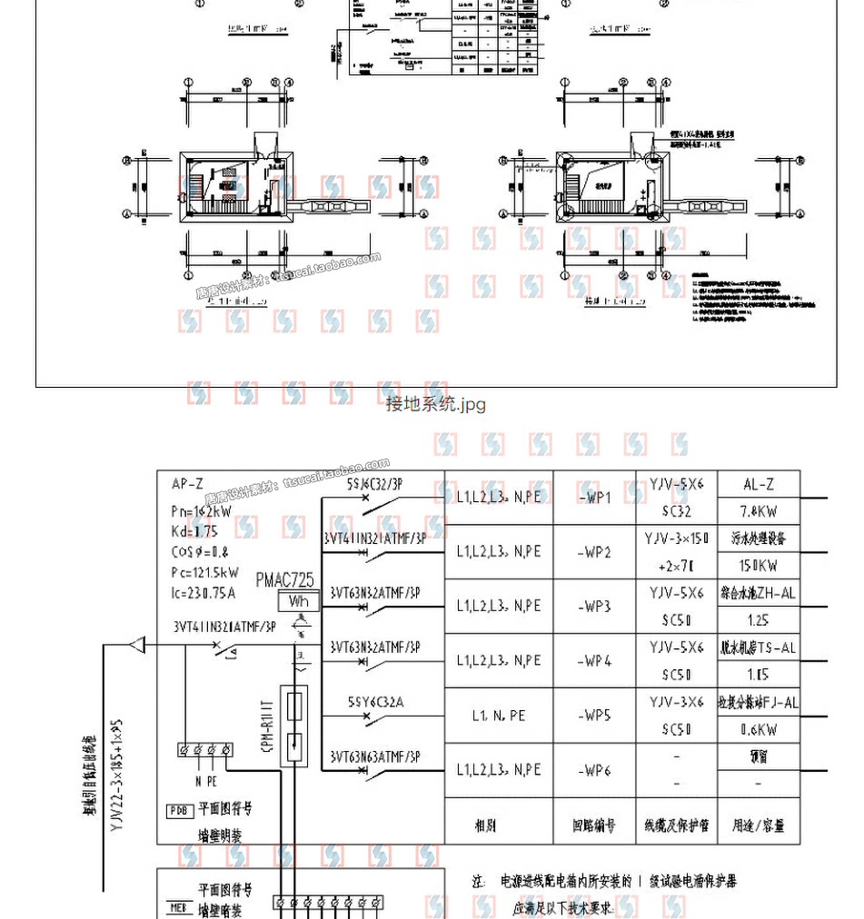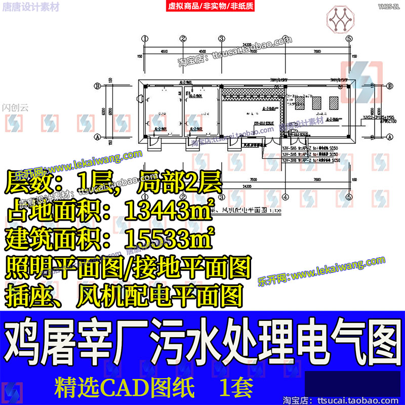 鸡屠宰场工厂车间污水处理电气照明插座配电系统设计CAD平面图纸免费下载